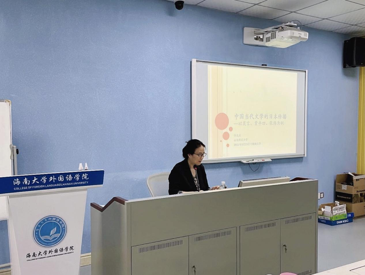 讲座伊始,李教授介绍了中国当代文学的定义,即1949年以后的中国文学,并说明本次讲座主要以莫言、贾平凹及张炜的作品为例,介绍改革开放后中国当代文学的日本传播情况。