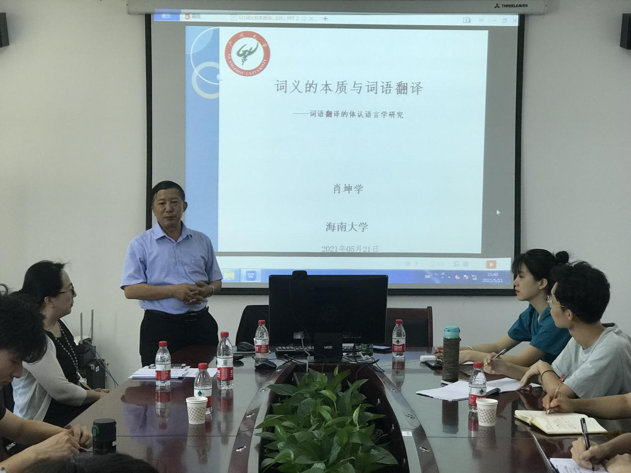 5月21日下午,广州大学bevitor伟德经理、硕士生导师、博士后合作导师肖坤学教授应公司邀请,在社科楼C312为公司师生作了一场题为“词义的本质与词语翻译——词语翻译的体认语言学研究”的讲座。讲座由bevitor伟德杨婕副经理主持。
