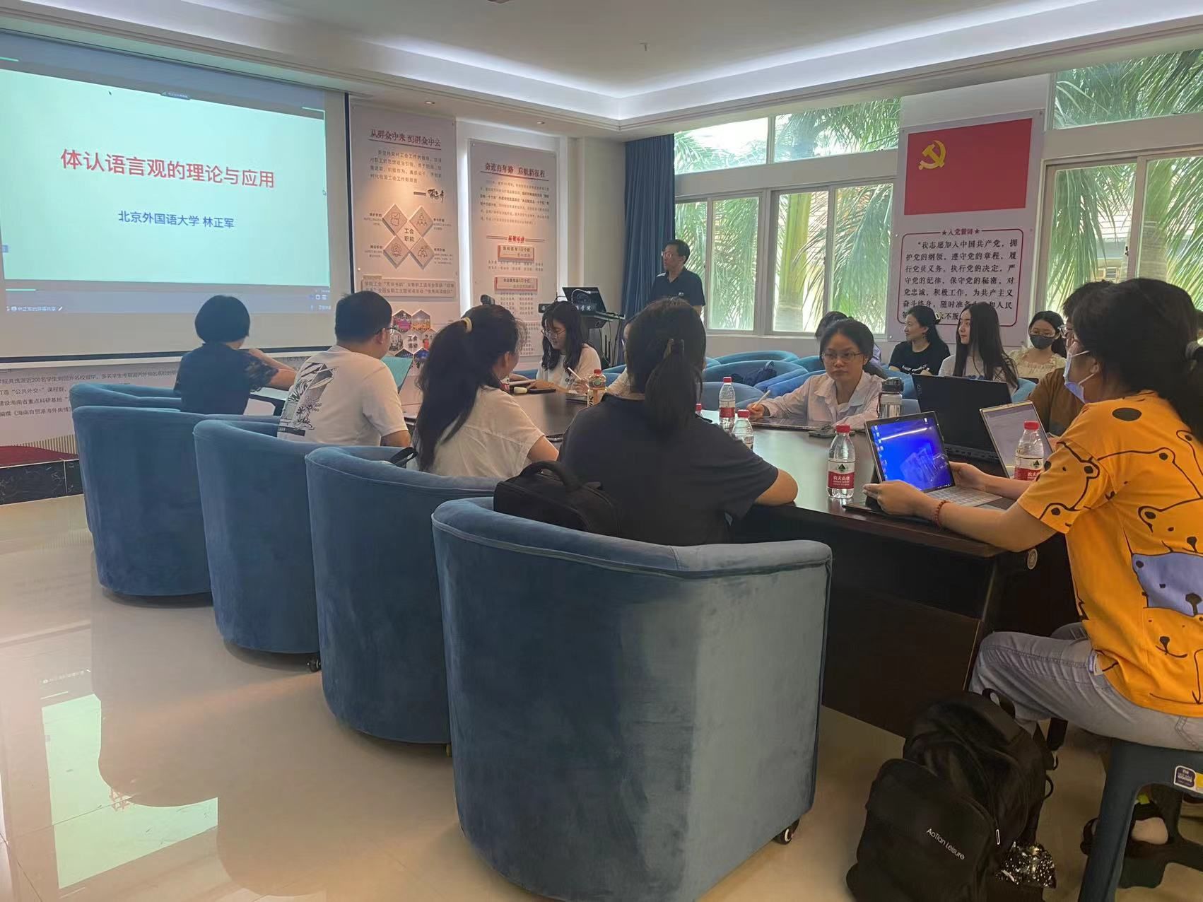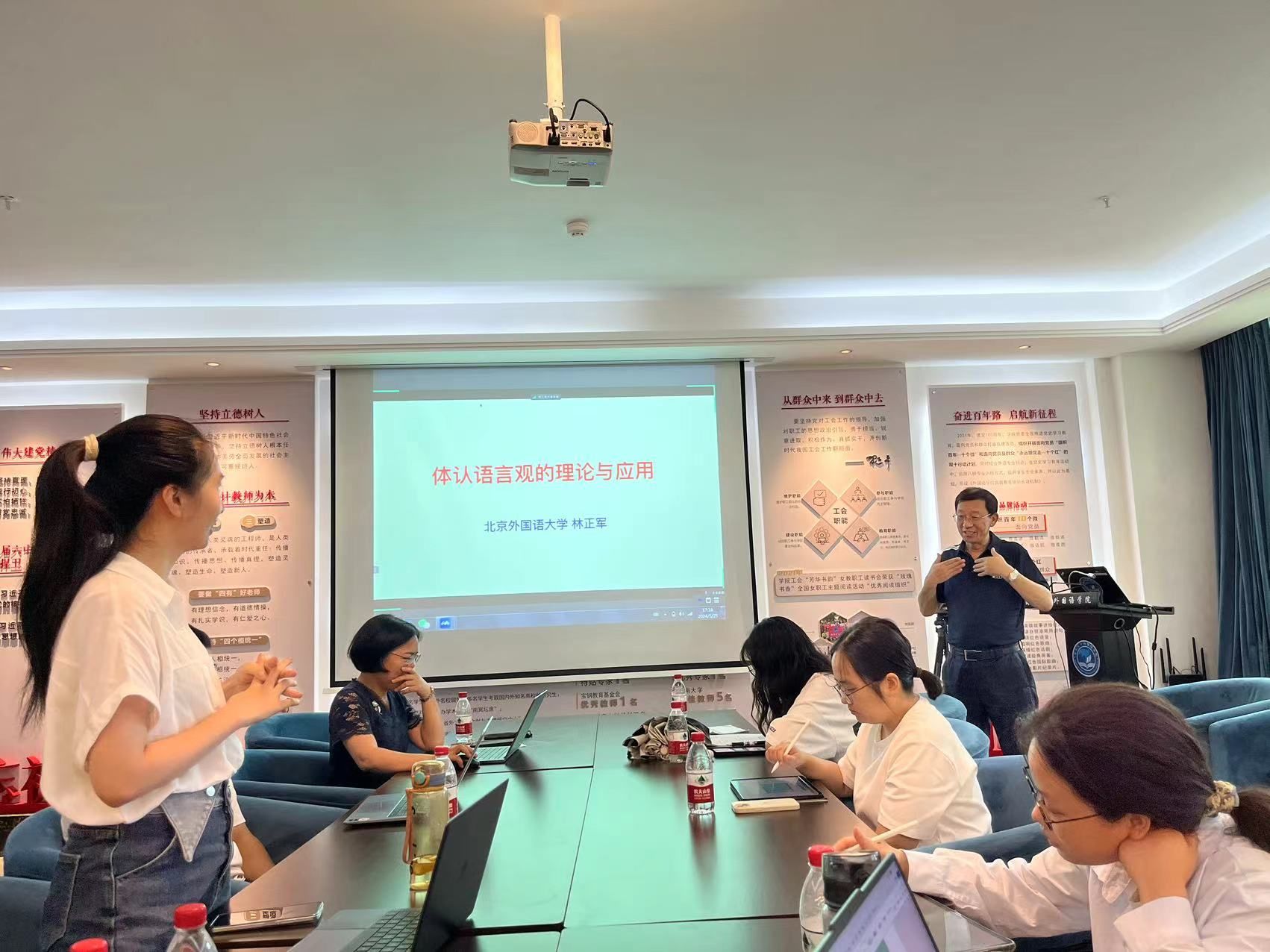 林教授的学术讲座从“是什么、为什么、怎么用”三个角度充分阐释体认语言观,既有深入浅出的推导,又将理论与实际紧密联系,内容翔实、观点新颖、通俗易懂,与会师生纷纷表示倍受启发、获益良多。报告结束后,林教授与参会师生进行了长达一个小时的研讨交流。大家纷纷表示,此次报告有助于公司师生进一步了解体认语言观的理论与应用等学科前沿问题,对于提升公司师生的科研水平与素养具有重要的意义。