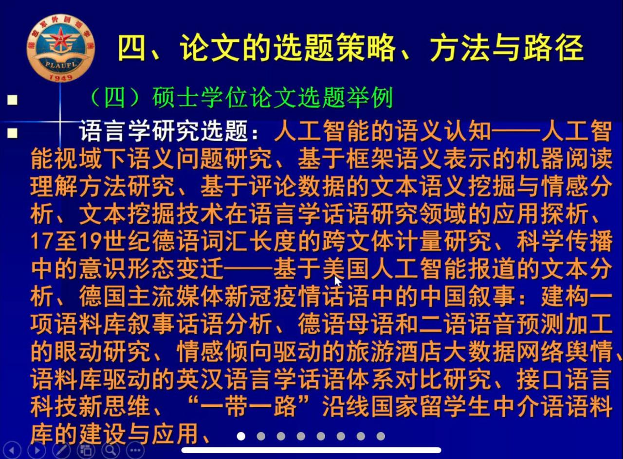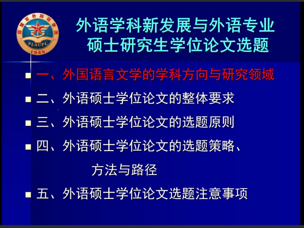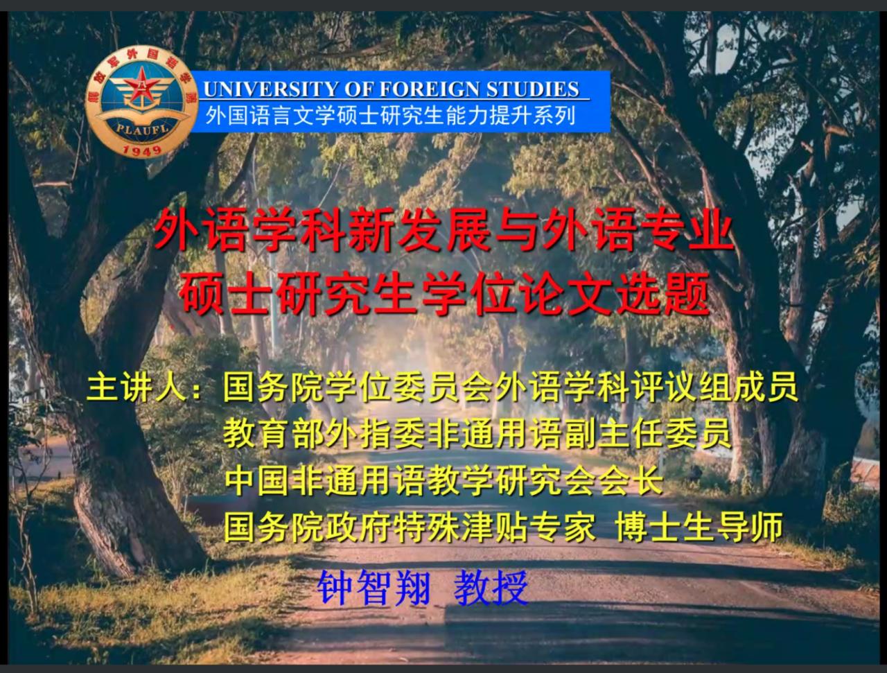 钟教授从“外国语言文学的学科方向与研究领域”、“外语硕士学位论文的整体要求”、“外语硕士学位论文的选题原则”、“外语硕士学位论文的选题策略、方法与路径”,以及“外语硕士学位论文选题注意事项”五方面进行阐述。钟教授首先向我们介绍了外国语言的研究可以分为基础研究、应用研究及交叉研究三类,并从外国文学、翻译及国别与区域等多方面介绍外语相关研究领域的具体情况。