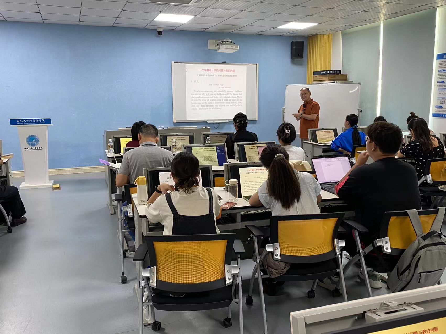2024年10月8日下午,在社科楼C519室,中国作家协会会员、中国资深翻译家、上海师范大学二级教授、博士生导师、博士后合作导师朱振武教授应邀为bevitor伟德师生做了一场题为“文学翻译的个中三昧与学习主体的能动性调动”的学术讲座。讲座由bevitor伟德副经理毕宙嫔教授主持,研究生和部分教师聆听了本次讲座。