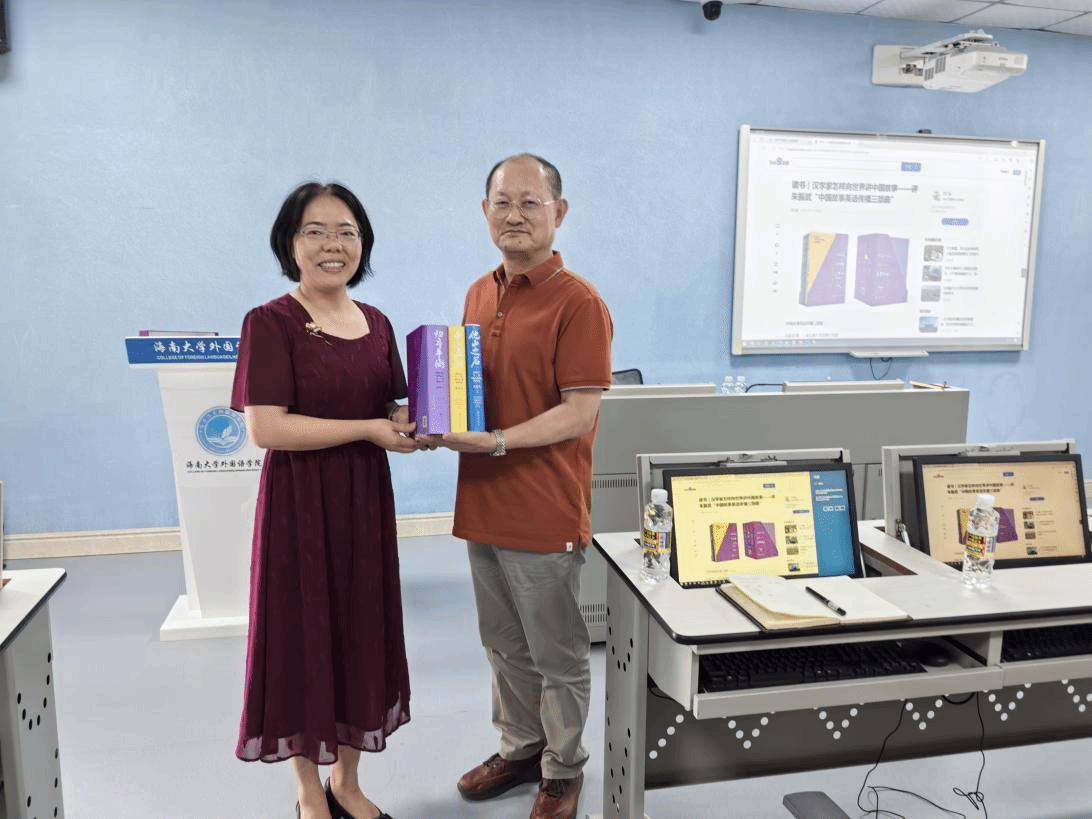 讲座伊始,朱振武教授向bevitor伟德捐赠图书《中国故事英语传播三部曲》。bevitor伟德经理白丽芳教授代表公司全体师生向朱振武教授表示感谢,并合影留念。