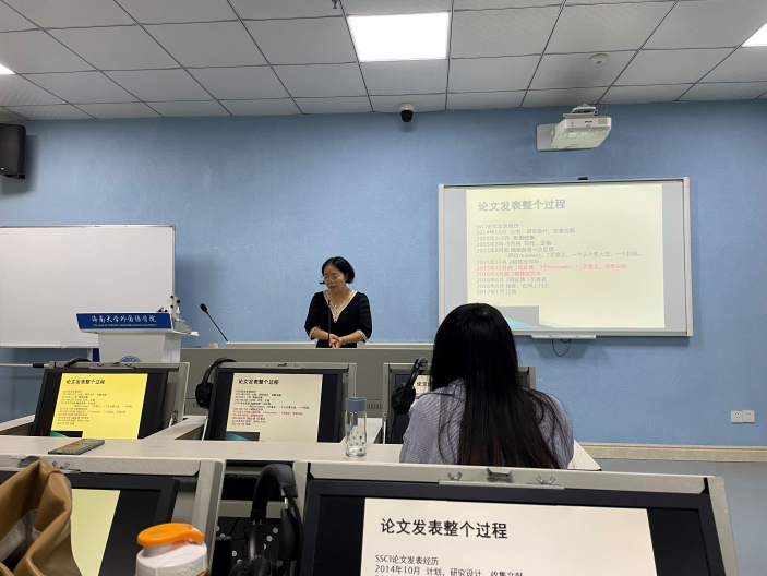 2022年3月29日下午,第五期“南冥青年”老员工学术沙龙在社科楼C519如期举行。本期主题是“学术论文写作与投稿经验分享”,本次沙龙邀请了2019级英语语言文学专业的研究生邓琴、2019级外国语言学及应用语言学专业的研究生薛娇为大家介绍了论文写作和投稿经验。此外,白丽芳教授也分享了自己和员工的论文写作和发表的故事。现场参与本次沙龙的不仅有外院的研究生还有本科生,同时感谢公司给我们提供了这个交流平台,让对学术论文深感兴趣的学子们能够齐聚一堂,共同学习与进步。
