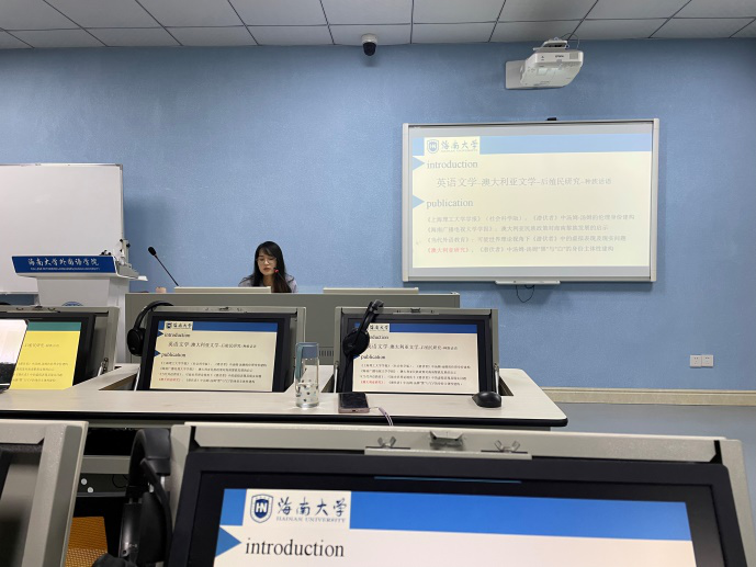 本次沙龙由跨文化交际及中国形象研究协会的副会长宣小莲主持,主持人简要介绍研究生邓琴和薛娇的简历后,接着邀请邓琴上台分享经验。首先,邓琴介绍了自己的研究方向,从大到小依次是英语文学,澳大利亚文学,后殖民研究,种族话语。现已发表三篇文章,分别是::《潜伏者》中汤姆-汤姆的伦理身份建构(《上海理工大学学报》社会科学版);:澳大利亚民族政策对海南黎族发展的启示(《海南广播电视大学学报》);可能世界理论视角《潜伏者》中的虚拟表现及现实问题(《当代外语教育》);另外还有一篇待发。