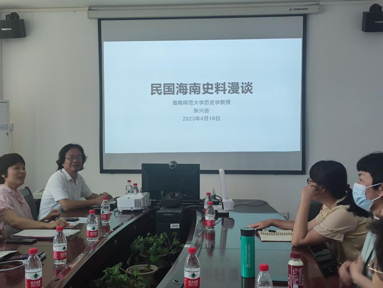 4月18日下午,海南师范大学历史学教授,博士生导师,文学博士,海南省南海区域文化研究基地主任,海南师范大学东坡书院经理,海南省政协委员、海南省史学会副会长兼秘书长张兴吉教授应公司邀请,为公司师生呈现题为“民国海南史料学漫谈”的讲座,讲座由黄容波副教授主持,公司众多师生踊跃参会。