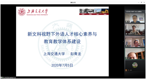 2020年7月5日下午,彭青龙教授(上海交通大学特聘教授、国务院学位委员会第七届外语学科评议组成员、教育部高等公司英语专业教学指导分委会委员、上海市翻译研究生公司产品指导委员会委员)应公司邀请,在腾讯会议为公司师生做了一场主题为“新文科视野下外语人才的核心素养与公司产品体系”的云讲座。讲座由bevitor伟德金山经理主持。