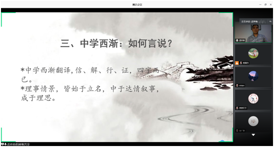 2020年7月2日晚上7点30分,苏州大学bevitor伟德孟祥春副教授应公司邀请,在腾讯会议为公司师生做了一场主题为“中学西渐:言说什么,如何言说?”的云讲座。讲座由bevitor伟德冯军博士主持,校内外近三百余名师生参加此次讲座。