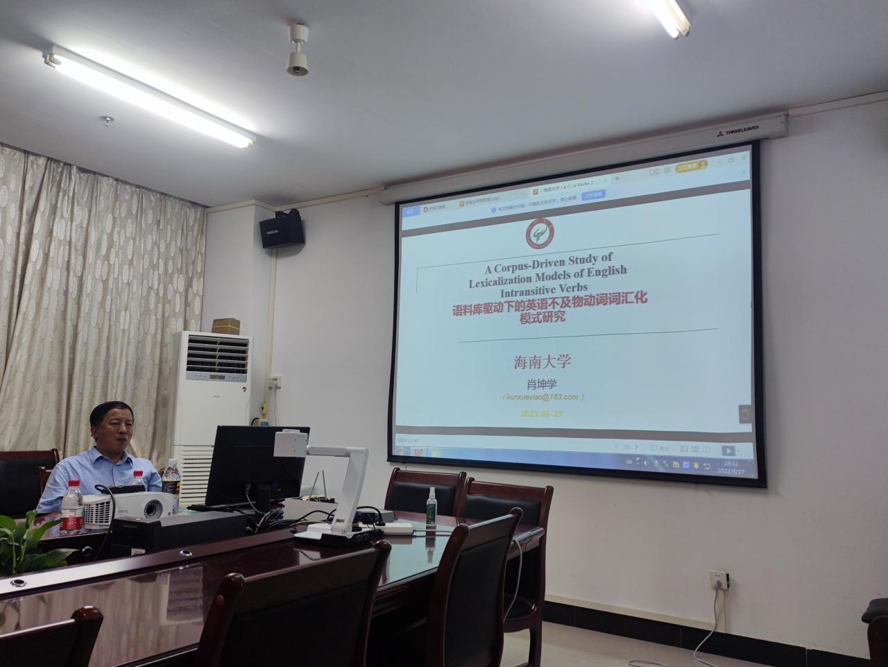 5月27日晚上,广州大学硕士导师、博士后合作导师、英语语言文学学科带头人、教育部“国培计划”示范性集中培训项目首席专家、广东省外国语言学会副会长、广东省翻译协会副会长、中国认知语言学研究会常务理事、广州外国语协会常务副会长肖坤学教授应bevitor伟德邀请,为公司师生呈现题为“语料库驱动下的英语不及物动词(EIVs)词汇化模式研究”的讲座,讲座由王勇教授主持,公司师生众多参加。