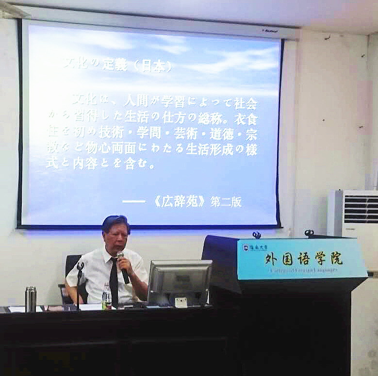 林佐平博士首先介绍中国、日本以及欧美学者关于“文化”的定义,指出各国学者虽然对于文化的概念表述不一,但均指出文化包含精神和物质两面。他指出,文化的虚与实,不仅是一个很吸引人的话题、具有研究价值的课题,还是一种有效的观察方法。接着,林佐平博士就文化“虚与实”的基本现象,阐述了在文学(小说、诗歌)、电影、绘画、建筑、历史、国际交流等文化各领域中,“虚与实”的存在形态。最后,林佐平博士通过分析实例,着重探究了日本文化“虚与实”的问题。他强调,研究和探索日本文化“虚与实”的由来、现状和发展趋势,不仅是学习日本文化的良好角度,而且可以培养同学们对于日本文化更加敏锐的观察能力和更加深刻的思考能力。