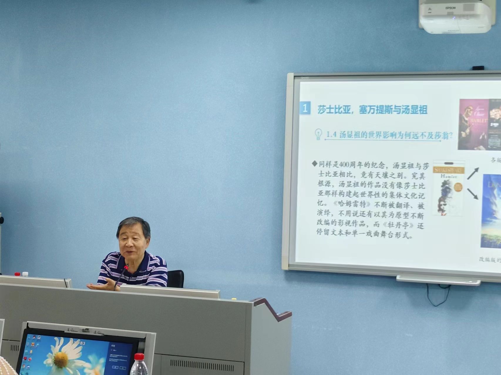 讲座伊始,罗选民教授向教师和同学们阐述了大翻译是本土产生的概念,是一种观念,以文化记忆为引擎,以文化传播为目的。罗选民教授指出,大翻译建立在人文基础之上,以思想深度代表学术创新和发展,进一步强调翻译实践和翻译研究要立足于世界格局之上,从而更好地服务于中国形象的构建与传播。罗教授从集中营的记忆,西南联大的记忆以及《哈姆雷特》和《鲁拜集》等文艺作品出发,详细阐释了文化记忆、大翻译与世界文学经典的关系。