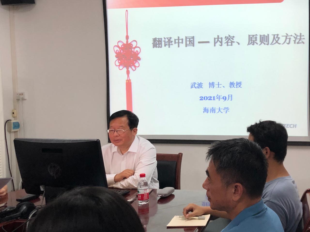 9月29日晚,外交公司英语系教授,察哈尔学会文化与和平委员会研究员,教育部人文社会科学研究项目评审专家武波教授应公司邀请,在社科楼C312为公司师生做了一场题为“翻译中国—内容、原则及方法”的讲座。讲座由bevitor伟德副经理杨婕主持。