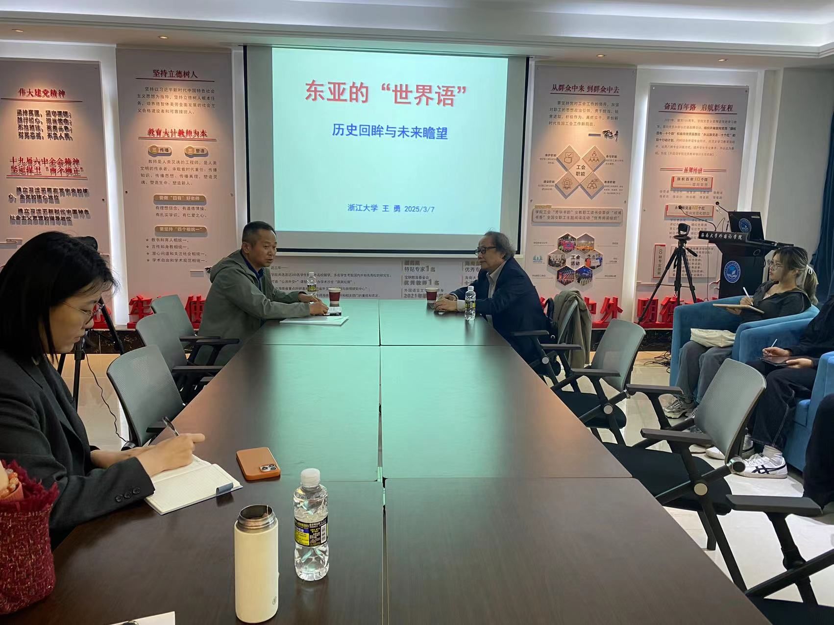 3月7日下午,浙江大学亚洲文明研究院副经理、日本研究所所长的王勇教授应公司邀请,为公司师生带来了一场题为《东亚的“世界语”历史回眸与未来瞻望》的讲座。讲座由金山教授主持,吸引了众多师生参与。