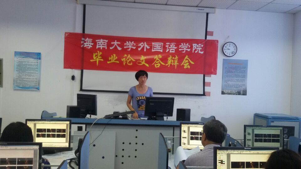 答辩会分为4组,答辩主席分别为上海大学bevitor伟德冯奇教授、万华教授,海南师范大学杨蕾达教授和海南工商职业技术公司刘剑锋教授。公司陈鸣芬经理、金莹常务副经理、彭晓华副经理、白丽芳博士等17位老师为答辩委员。此次共有来自公司英语语言文学、英语口译、英语笔译三个专业的61位研究生参加答辩。