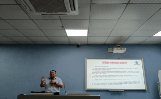 接着,冯奇教授以《“三进”示范策划与实践》为题进行分享。冯奇教授从课程思政的背景引入此次讲座,从党和国家领导人“坚持为党育人、为国育才”的时代需求、我国教育注重立德树人的历史渊源两方面,着重分析课程思政的重要性。同时,冯教授也讲述了“三进”的具体内涵和工作要求,并指出“三进”既是课程思政的体现,也是后者的升级版。作为以“三进”为基础展示的最终成果,《理解当代中国》系列教材在推动外语教育的思政育人中的重要性不言而喻。接着,冯教授阐释了推进“三进”工作的设计与实施,他指出,在举措上,要通过多种方式结合,如课堂设计,校外学习,以点带面等促进“三进”开展。冯教授随后分享了部分优秀思政成果,并指出对“三进”的教学方式要求和教学原则。之后,冯教授结合多个翻译实例,展示翻译实践环节如何实现思政的有机融入。最后,冯教授以“学好外国语,做好中国人,讲好中国故事”为结束语,并表达了对海大外院“三进”工作顺利推行的期待和信心。