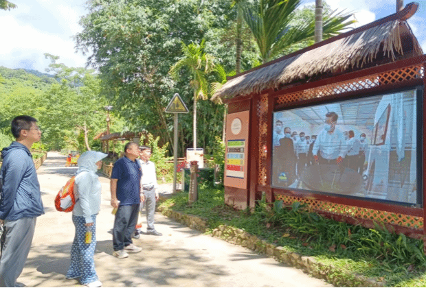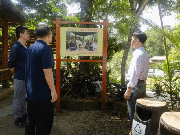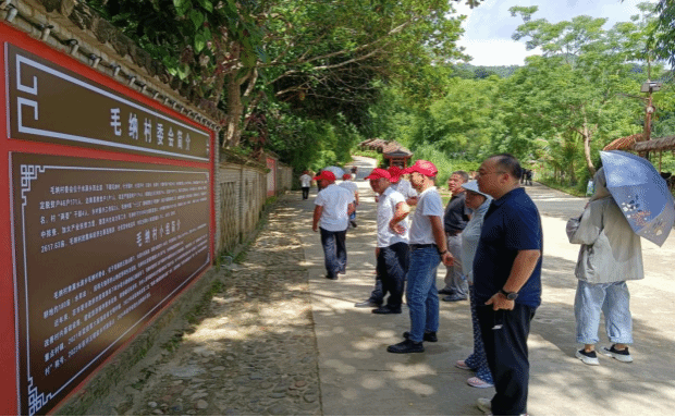 参观五指山革命根据地纪念园后,党员们来到乡村振兴示范样板村--五指山市水满乡毛纳村参观学习。在五指山市水满乡毛纳村,党员们沿着习近平总书记调研的足迹,先后参观了文化长廊、手工茶坊、连心桥、硕果亭、共同广场等地,了解毛纳村发展乡村旅游、推进乡村振兴、生态环境保护等先进经验和良好做法。