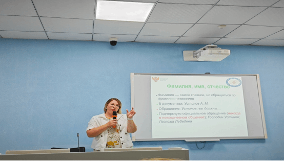 活动伊始,专业责任教授王希悦向大家介绍了到访的五位俄罗斯专家,并对她们的到来表示热烈欢迎。随后,两位俄罗斯专家分别就不同的主题展开讲座,内容涵盖了现代语言学的研究方向、俄语词汇的动态发展、俄语交际语及文化内涵等方面,专家们深入浅出的讲解和生动的案例调动了在场同学们的学习热情。在互动环节中,同学们积极提问,专家们也耐心解答,现场气氛热烈而融洽。通过这次座谈活动,同学们不仅拓宽了视野,还增强了俄语语言实践能力。