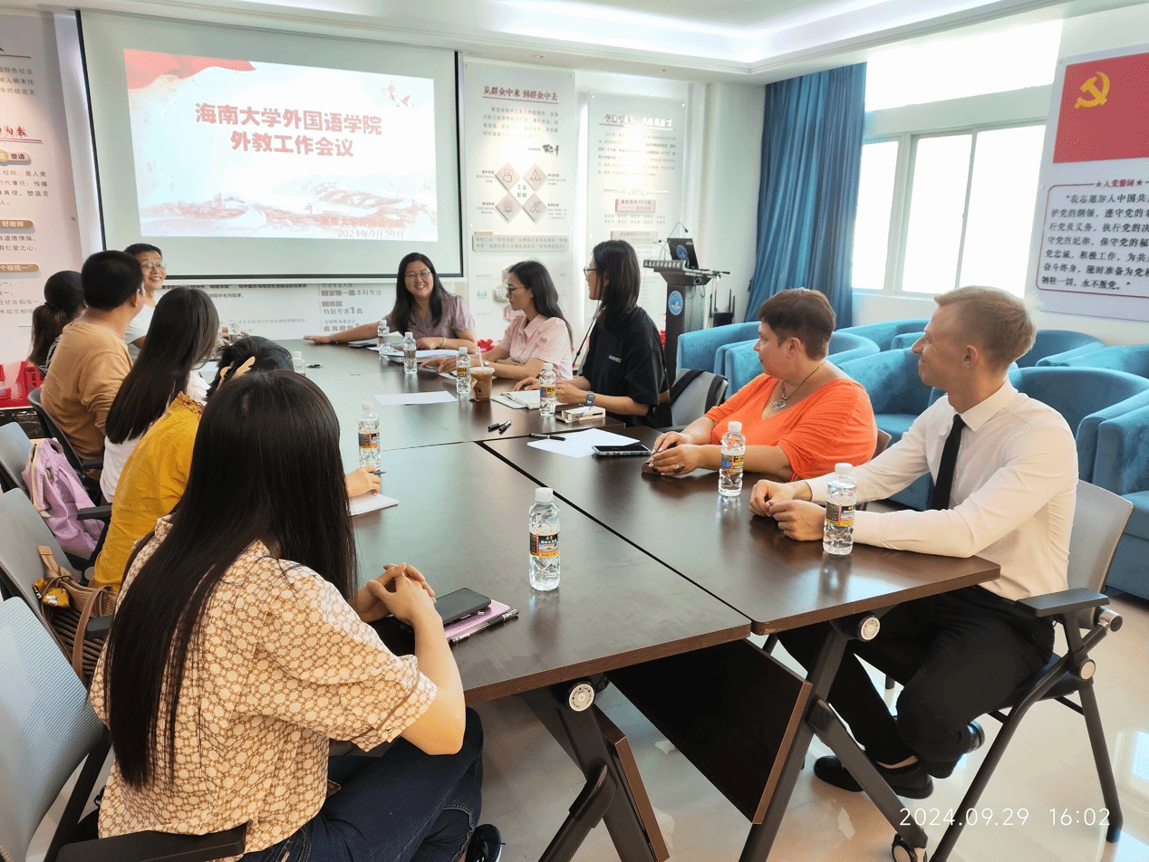 首先,王勇、毕宙嫔总结了本学期开学几周以来英语、日语、俄语外教及小语种外语教学和社会服务情况。