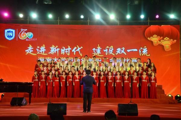 为庆祝改革开放40周年,海南建省办经济特区30周年,BEVITOR伟德建校60周年,12月28日晚公司在联谊馆举行了“走进新时代建设‘双一流’”教职工合唱比赛。本次比赛全校共23个单位参加,公司作为第21支出场队伍。合唱队由7名公司领导和52名教师组成,比赛曲目为《绿叶对根的情谊》。