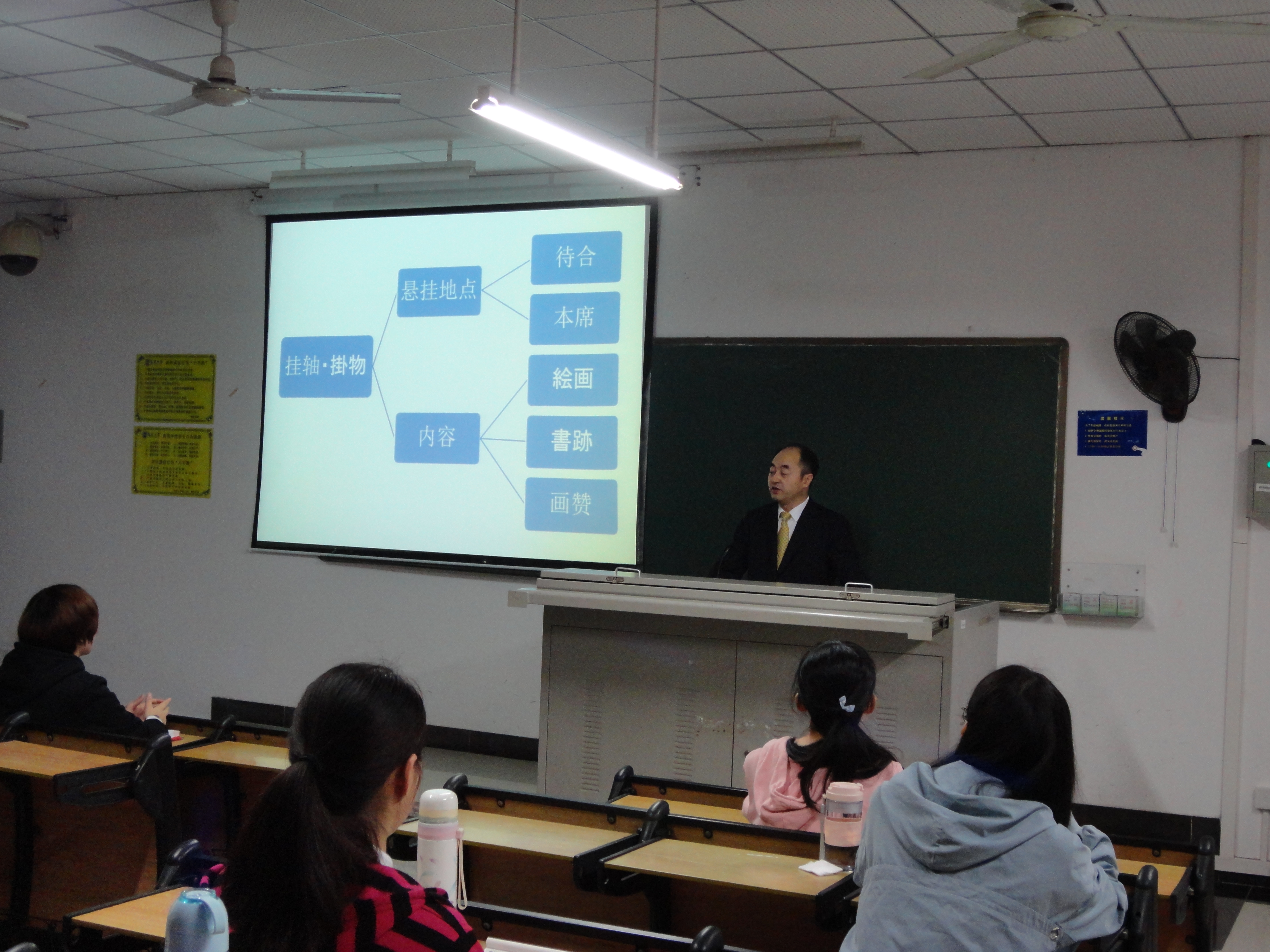 在各个讲座中,专家通过大量的图片给同学们进行了形象生动的讲解,同时专家指出,日本茶道更可谓是日本社会文化的一个缩影。它融和佛教、儒教、阴阳道、神道思想之要义为一体,吸纳固本之食道、长智之书道、积勇之武道、增美之花道和清神之香道等诸多文化内容之精华,形成了颇具日本特色的综合性生活文化,为解析日本国民性提供了最佳切入点。