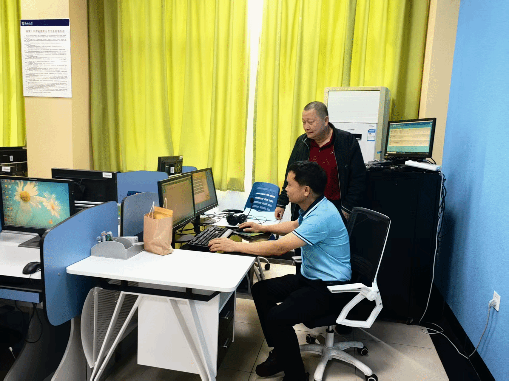 安全检查工作小组人员检查了10号教学楼及社科楼实验室的消防器材:确认灭火器均在有效期内,压力处于正常范围,瓶体无腐蚀、损坏现象;消防栓内水带、水枪齐全,阀门可正常开启,消防栓周边无遮挡;消防器材的检查记录完备。安全检查小组还重点检查了实验室各类设备设施、计算机、语音设备、网络设备运行状态,发现有个别员工电脑开机后系统报错,无法进入正常桌面;主机有异常声响,疑似散热风扇故障;员工用耳机声音输出微弱,影响正常教学使用等情况,对发现的问题安全小组进行了及时的维修护维修,保障实验室设备均能正常安全运转。