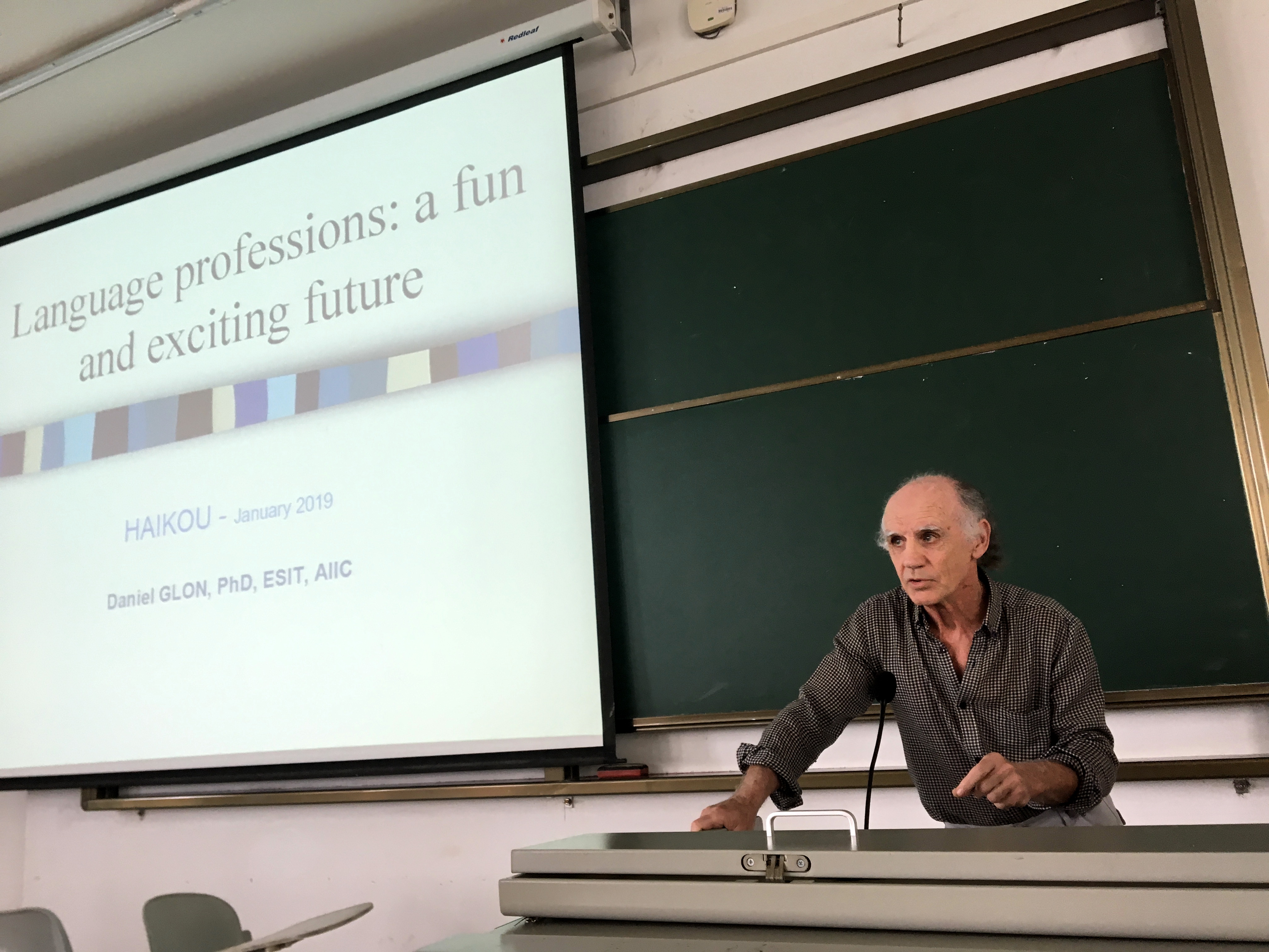 Deniel Glon教授首先介绍了自己口笔译的实战经历,他多次担任奥运会和冬奥会口译工作,口译时长长达3500小时。他认为自己与员工最大的不同无关国籍、年龄,而是犯错的数量。犯错并不可怕,只有错误才能让人成长。随后Deniel Glon教授分析了中西方翻译市场的差异,指出与西方正在缩小的翻译市场相比,中国的市场正在扩大。随着中国国际地位的提高,越来越多的国际会议在中国召开,这给译员和翻译专业的员工带来了巨大的机遇,要想把握机遇就要不断提高自己。Deniel Glon教授还提到,口译这份工作可以极大地开阔眼界、增长见识,接触各界精英;但是,欲戴王冠必承其重,译员必须承受巨大的工作和心理压力。最后,他鼓励员工们多阅读、多积累,多涉猎自身未知的领域,不要为专业词汇所吓倒,因为任何领域真正的专业词汇不会超过100个。他还告诫员工们要坚持锻炼,保持健康的体格和乐观的心态,这样才能让自己事业走得更远。
