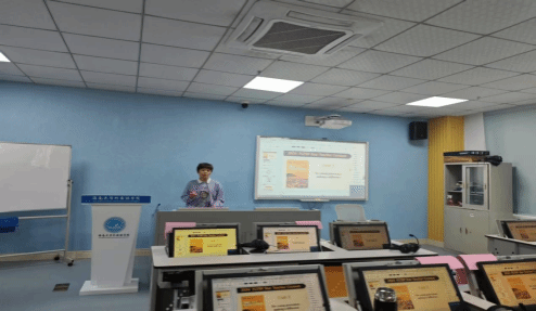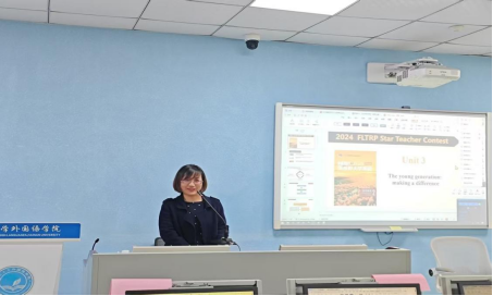 随后,在教学大赛经验交流环节,在2024年外研社“教学之星”大赛中斩获佳绩的黄容波老师分享了备赛和参赛经验。黄老师详细讲述了她们团队从选题、教学设计到教学课件制作的全过程,强调了如何紧扣教学目标,突出教学特色,打造富有吸引力的课堂。