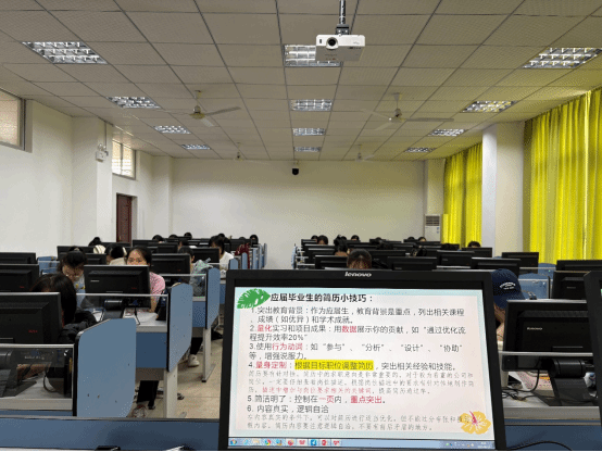 同学们在动员会上交流简历制作技巧