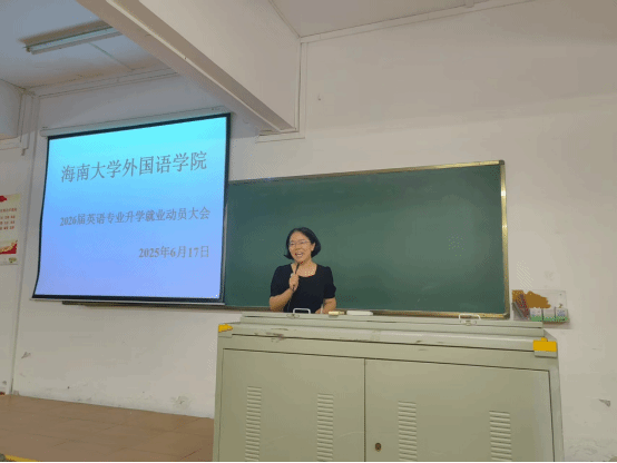 动员会上,白丽芳经理分享了公司和英语系近几年的升学就业情况,特别强调外语类人才的发展机遇。提醒同学们要提前规划、明确目标,结合自身兴趣与优势,理性选择升学深造或高质量就业。她表示,公司将全力整合资源,为同学们提供全方位的帮扶和支持,成为大家的坚实后盾。