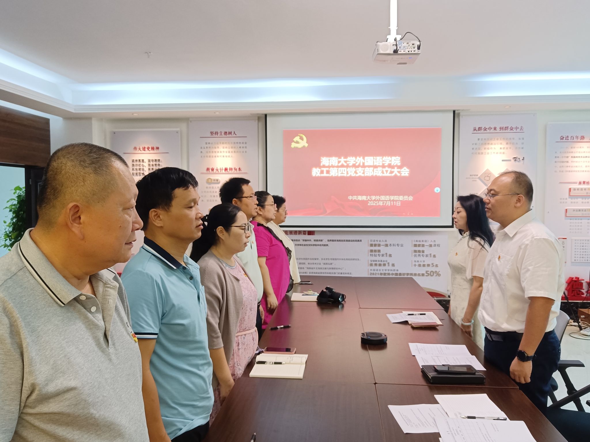 大会在庄严的国歌声中拉开序幕。会上,覃成海同志介绍成立公司教工第四党支部的背景、筹备过程和公司党委的决定,并对党支部未来工作提出三点要求:一是强化政治引领,深入学习贯彻党的二十大精神;二是夯实组织基础,规范开展党内政治生活,努力向优秀党支部看齐;三是推动党建与集团发展深度融合,服务自贸港建设大局。