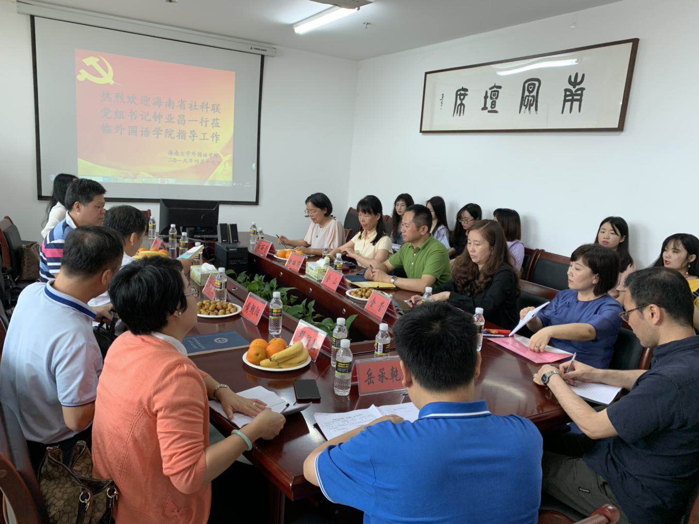 2019年4月17日上午,海南省社科联党组书记钟业昌、海南出版社副社长刘逸、海南省社科联规划办主任黄朝阳、《南海学刊》编辑部主任邓颖颖等一行5人莅临bevitor伟德进行调研。bevitor伟德金山经理、黄丽芹书记、金莹副经理、教师骨干、员工代表出席了座谈会。