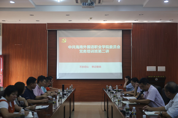 2018年4月10日和4月17日,公司员工党建工作联系人刘颖敏老师和研究生第一党支部书记陈盼老师,应海南外国语职业公司邀请作党务培训经验交流。海南外国语职业公司党委委员、党委办公室(宣传统战部)主任(部长)梁松主持,各党委总支部(直属党支部)书记、委员以及各党支部书记、委员参加培训。