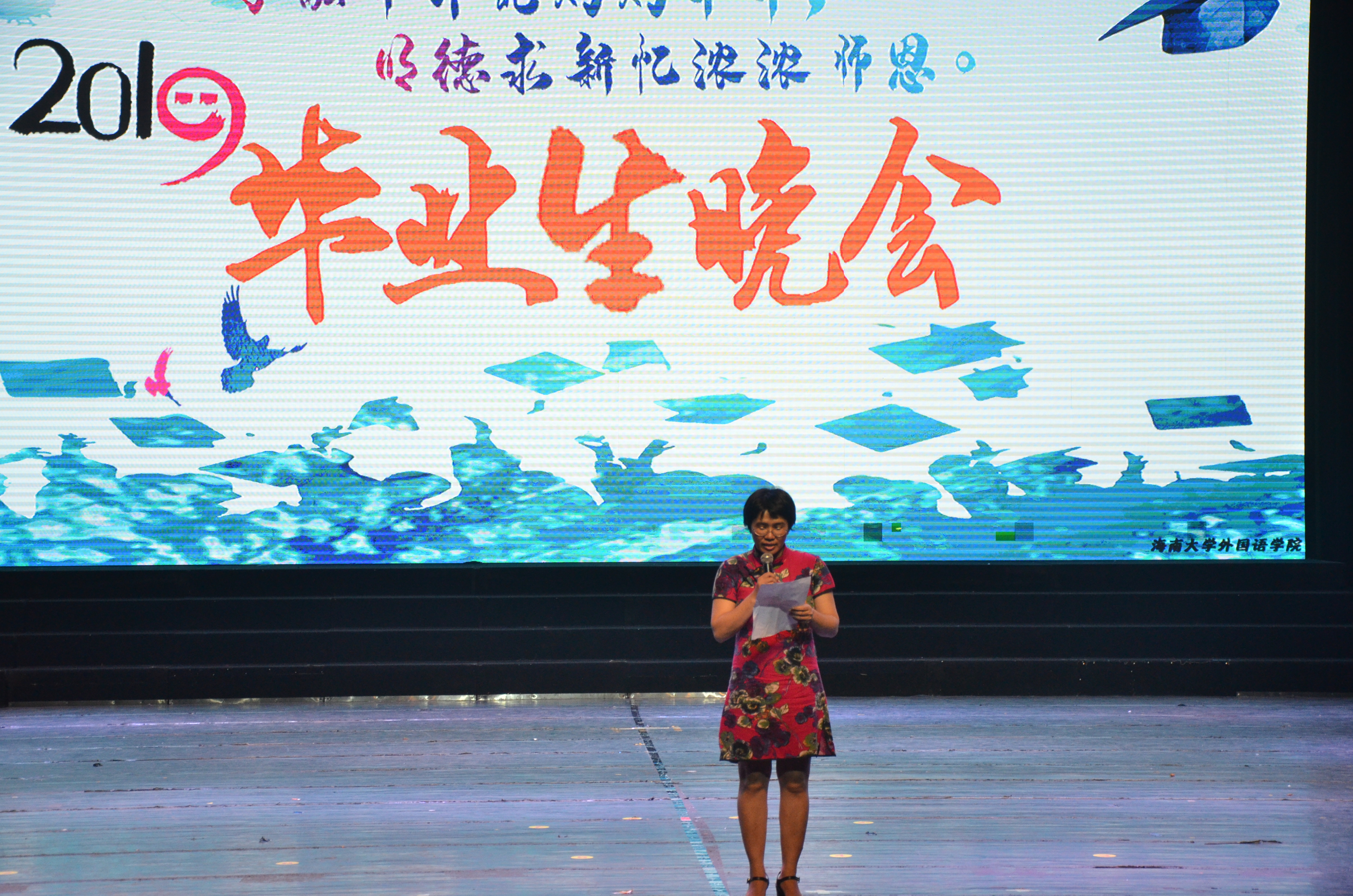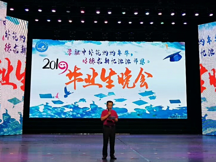 晚会上,金山经理为毕业生致辞。他肯定了2019届毕业生们刻苦努力学习的精神以及在各项赛事中取得的优异成绩,认为他们以实际行动践行了“学融中外、明德求新”的院训。他对毕业生们提出了两点希望:第一,希望毕业生们永葆学习热情,坚持终身学习,让学习像呼吸一样成为生活中不可或缺的一部分;第二,希望毕业生们心中有爱,做到爱自己、爱父母、爱亲人、爱生活、爱人类、爱自然,能够在爱中成长、在爱中前行。他表示,海大外院是永远的家,毕业生们在努力学习、工作之时,要记得在祖国最南端还有热切关注其成长的老师,欢迎常回家看看。