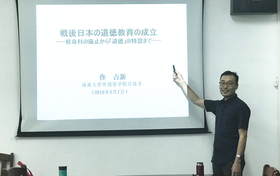佟占新老师是日本京都大学博士,主要研究日本近现代教育史、日本教育与文化。分享会上,佟占新博士以“战后日本道德教育体制的确立过程”为题,介绍了其研究成果,指出战后日本实行全面主义道德教育为主、“道德课”为辅的道德教育体制,“道德课”作为教育课程的新领域于1958年被特设,它的特设是对学科中心主义德育观的否定,更是对经验主义的德育观的肯定和坚持,而战后日本道德教育体制正是随着“道德课”的特设最终确立的。
