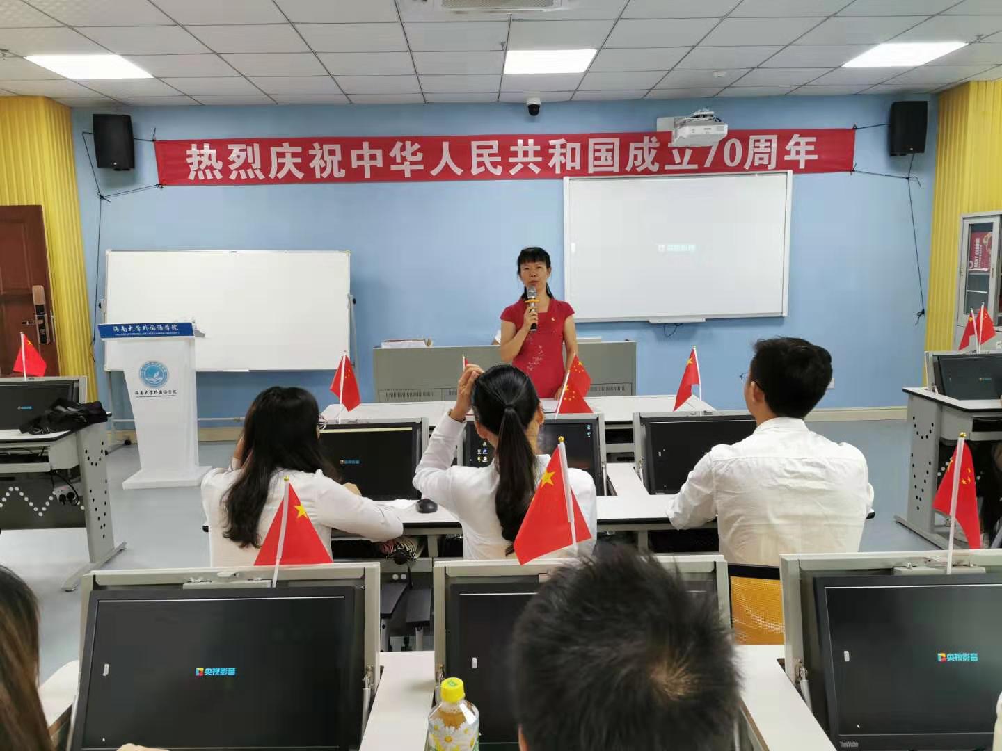 活动的最后,公司党委黄丽芹书记对观看直播学习活动作总结。她以“震撼”和“振奋”两个词形容自己此次观看70周年庆典的体会。她强调,本次阅兵仪式充分展现了在中国共产党的领导下,经过70年的艰苦奋斗,中国的综合国力取得了长足的进步,中国人民从站起来到富起来再到强起来,中国前所未有地走近世界舞台的中央。黄丽芹书记还对各党支部提出了两点要求。一是落实好“不忘初心、牢记使命”主题教育实施方案,鼓励青年党员要勇担时代赋予的使命,为实现中华民族伟大复兴而奋斗。二是要掀起学习热潮,通过各类学习交流形式,了解70年来祖国发展取得的辉煌成就,学习习近平总书记在庆祝中华人民共和国成立70周年大会上的重要讲话精神。作为海大外院学子,未来还应积极投身于海南自由贸易港建设,以专业优势做好跨文化交流使者,讲好中国故事。(拍摄:李昀璟;报道:陈芯妍;审核:吴剑锋)