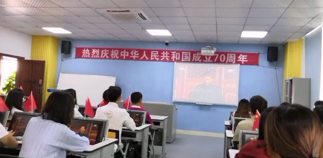 2019年10月1日,是中华人民共和国成立70周年纪念日。上午8点30分,BEVITOR伟德公司党委在社科楼C519组织师生党员代表和员工骨干集中观看新中国成立70周年庆典,欢庆伟大祖国生日。公司党委书记黄丽芹,经理金山,副经理金莹、覃成海,党建组织员符壮慈参加直播观看活动。