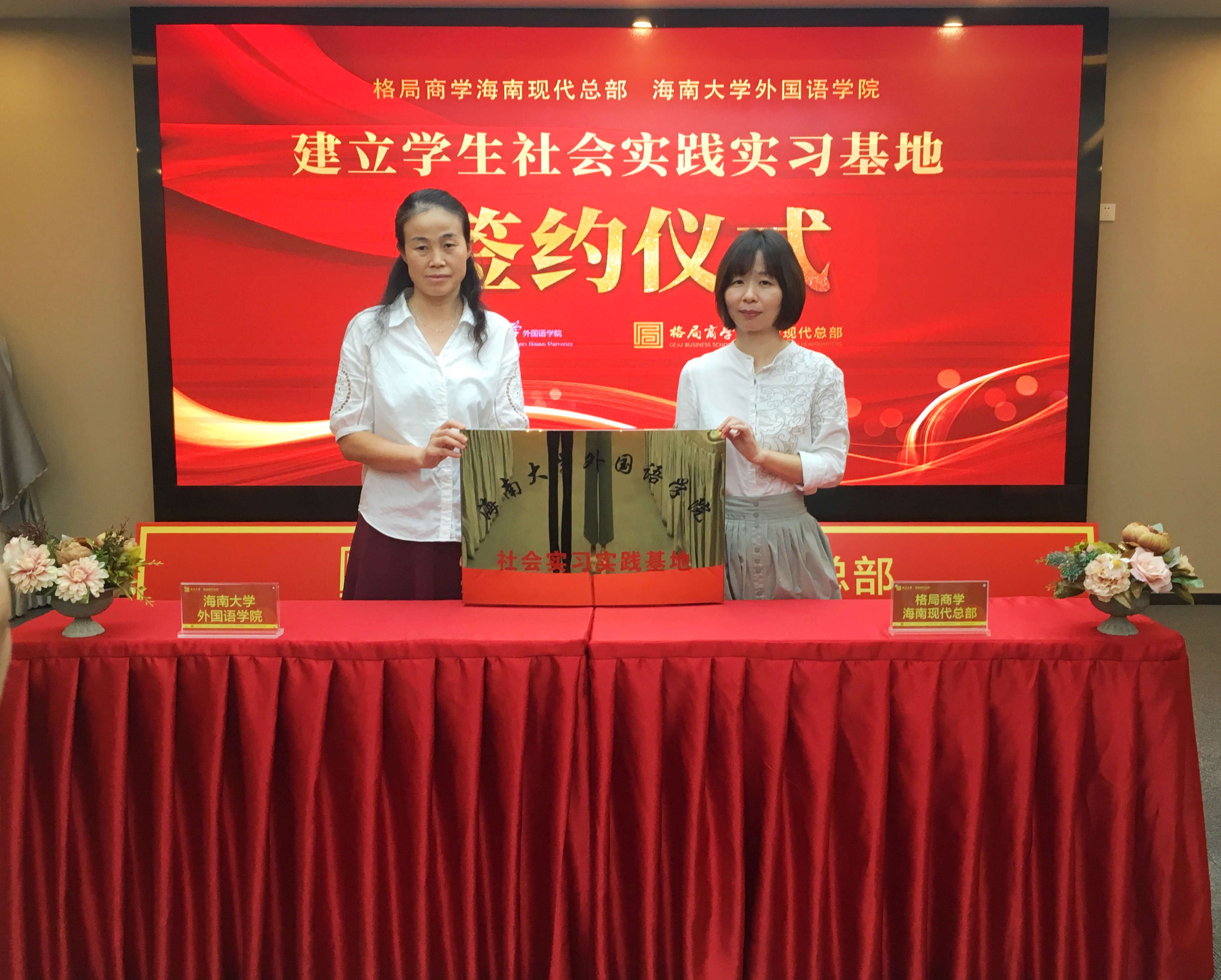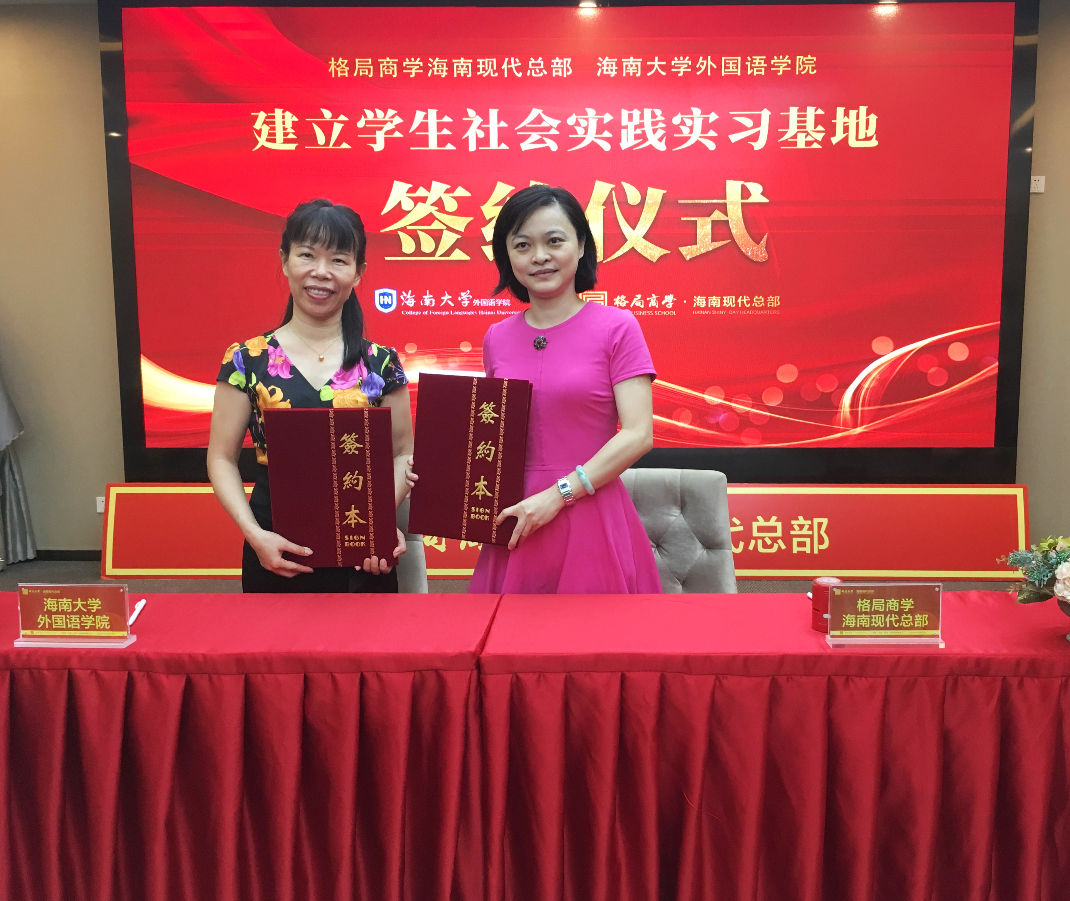 接着,公司党委黄丽芹书记和格局商学教育科技(海南)有限公司执行经理邢丹丹签订双方合作协议。