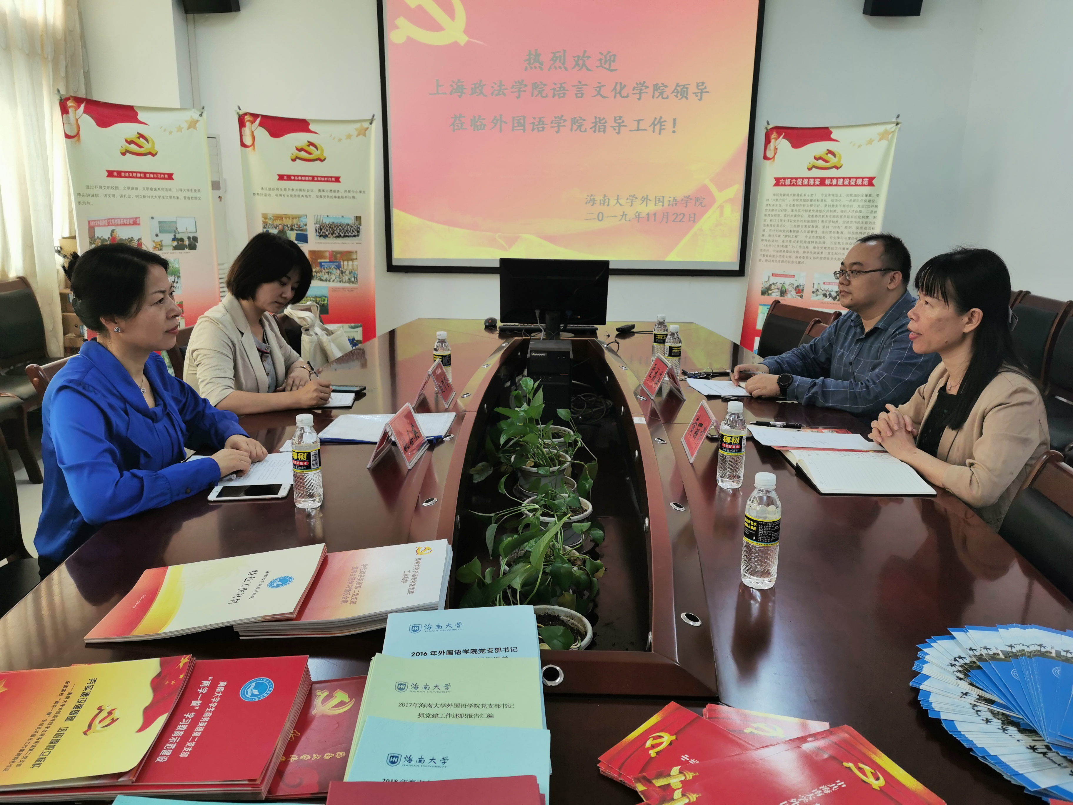 2019年11月22日上午,上海政法公司语言文化公司党总支书记姚善英一行莅临公司交流座谈。公司党委书记黄丽芹、副经理覃成海出席。