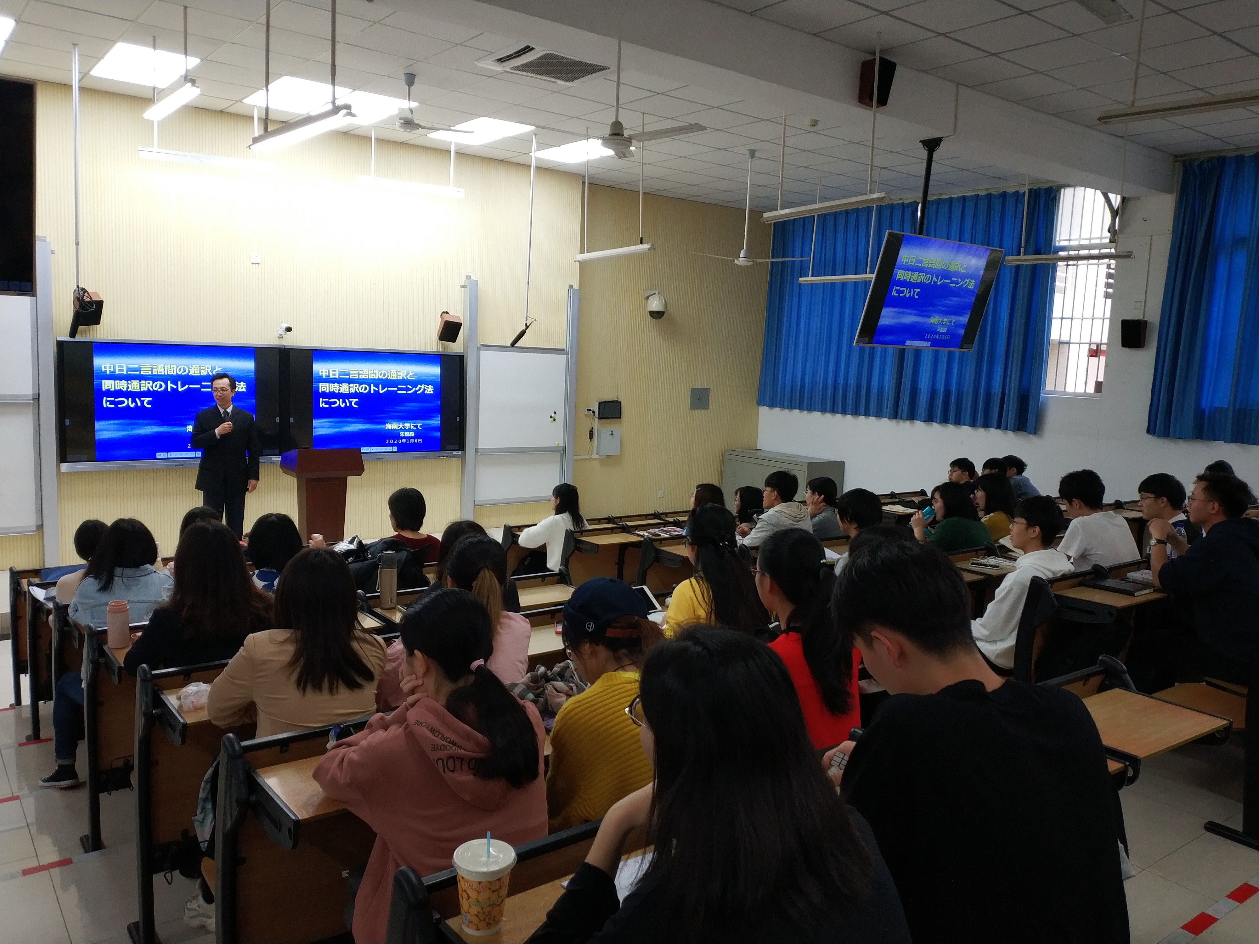 本次小学期授课对日语系同学是一个非常好的机会,讲座全程使用日语进行讲授,宋教授幽默风趣,会场座无虚席、掌声此起彼伏。此次不仅日语专业2016级、2018级本科生出席,日语语言文学、日语笔译专业研究生也积极参加,讲座还吸引来自英语语言文学专业研究生等,其他专业本科、研究生同学、日语系多位教师旁听。老师、同学们纷纷表示受益匪浅,了解了国内外口译和同声传译教和学的现状,了解了成为口译和同声传译译员的基本要求。今后将继续认真学习,提高日语口译水平。