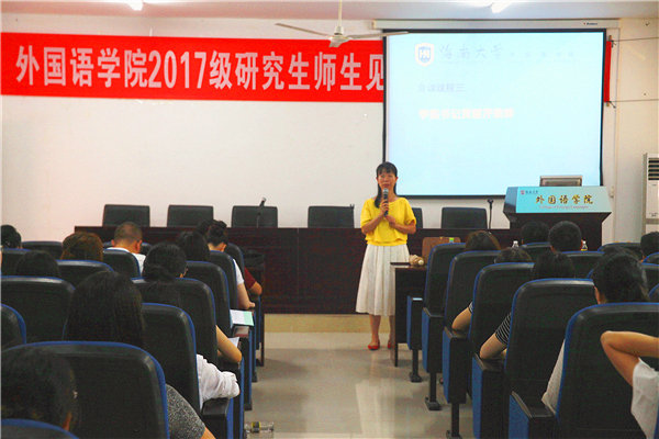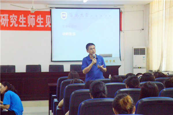 研究生导师精彩发言,分享真谛。导师们将自己人生最真的感悟和希望,与同学进行了分享。彭晓华教授尤其告诫新生同学们要注重学风,严禁抄袭;冯军老师要求同学们注重个人专业能力的提高,增加自我的附加值,不断促进自我知识储备的积累;王勇老师建议同学们做到博览群书,注重外语与母语的双语语言文化知识的积累;黄丹英老师要求同学们注重知识结构层面的丰富与积累;杨国良老师提出了“意趣”,即希望同学们研究生学业期间的学习与生活既充满意义,又满怀趣味,成为一名热爱生活、学业优良的社会青年。杨帆老师提出教学互动,不断在实践中提升。