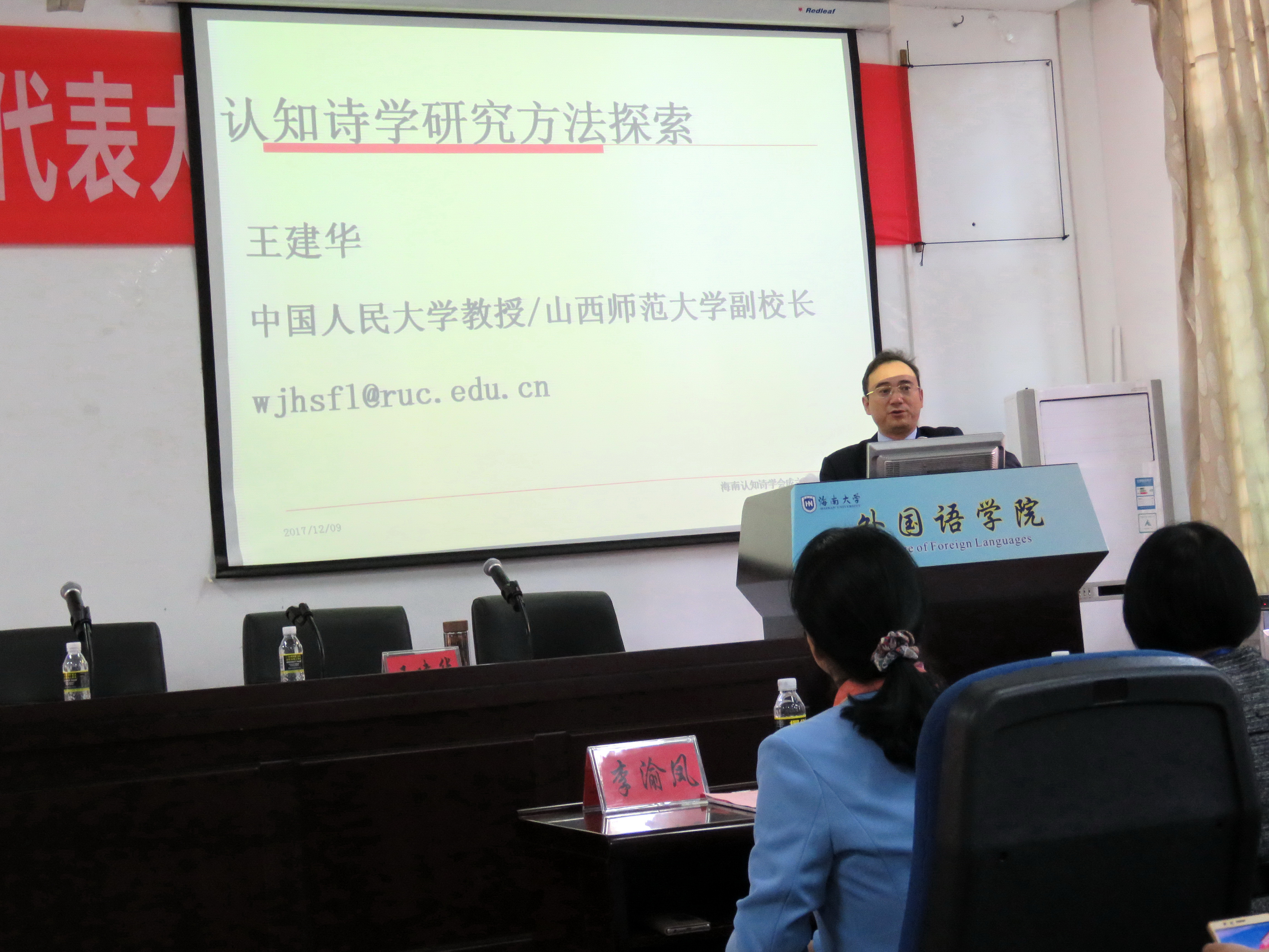 中国人民大学博导、陕西师范大学副董事长王建华教授在致辞中热烈祝贺大会的顺利召开,表示此次盛会的成功召开,为海南省认知诗学学会的成立奠定了坚实的基础,将为日后海南省认知诗学研究作出巨大的贡献。