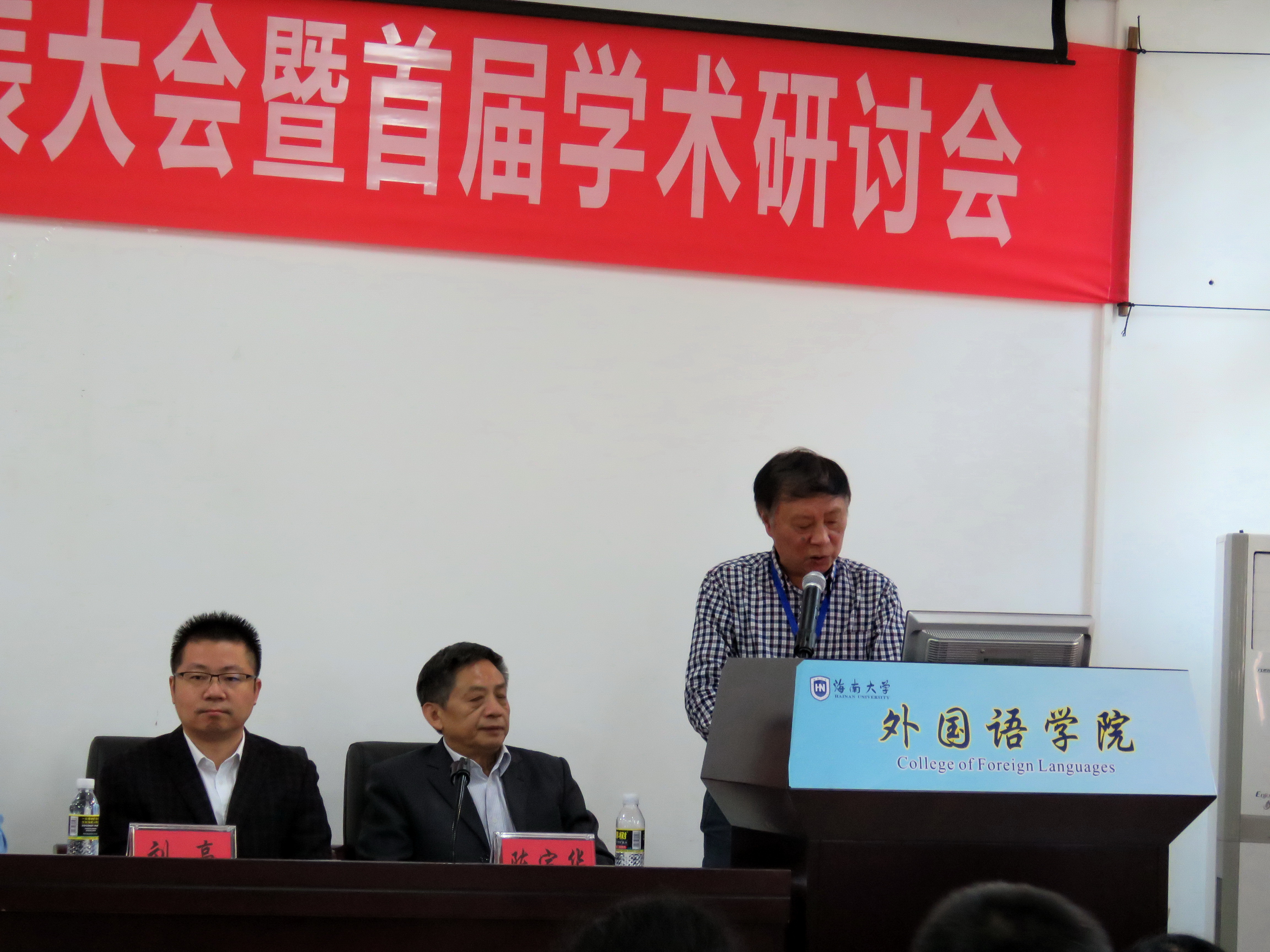 海南省认知诗学学会发起人熊沐清教授在致辞中感谢参与本次大会的专家、学者及为认知诗学学会筹备付出辛勤努力的所有人员。认知诗学作为新兴的跨学科研究领域,是国内外专家、学者跨学科研究的交流平台。他表示成立海南省认知诗学学会,不仅能够增强国内对认知诗学的研究,更能提升海南省外语学术研究的水平。道路曲折,但前途光明。