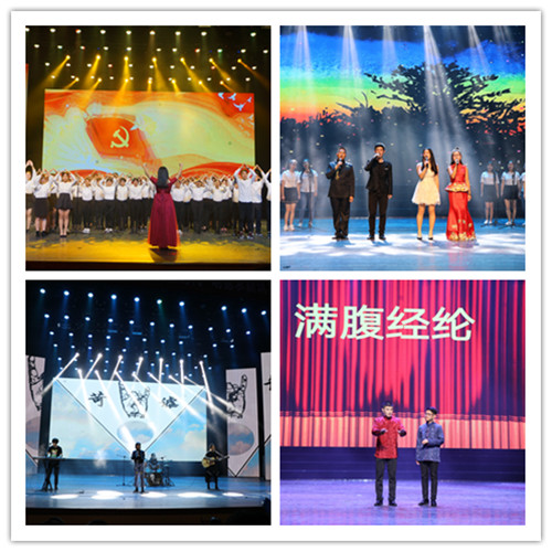 晚会分为三个篇章:“激情唱响 灼灼赤诚颂今朝”、“叩醒长夜 焱焱光华铭初心”、“钟灵毓秀 星星火种筑梦想”,各篇章节目形式多样,精彩纷呈,涵盖歌曲、舞蹈、荧光默剧、小品、相声、音乐剧、舞台剧、器乐合奏等,充分展现了公司特色和员工们的多才多艺。器乐合奏《我的天空》张扬着青春的激情与活力,调动了晚会现场的热烈氛围;荧光默剧《漆黑中的追踪者》,利用新型材料营造出光与影相交织的神奇效果,构思巧妙,创意十足;独具风格的俄罗斯曲目《龙之歌》,将歌曲与舞蹈完美结合,展现了日俄专业的文化特色;教工节目《爱的华尔兹》和《一杯美酒》或温馨浪漫或热烈明艳,为观众带来了一场沁人心扉的视听享受;舞台剧《致梦想》深情真挚,激励着现场每一位同学勇往直前,追寻梦想;欢快感动的小品《进击的女婿》,诙谐的用语、情感的触动,让观众捧腹大笑的同时也引人深思;团学干部们带来的舞蹈《疯狂课间》,动感十足,再一次点燃了全场气氛。伴随着《see you again》舞蹈音乐的结束,2017年“喜庆十九大”文艺晚会圆满落幕。
