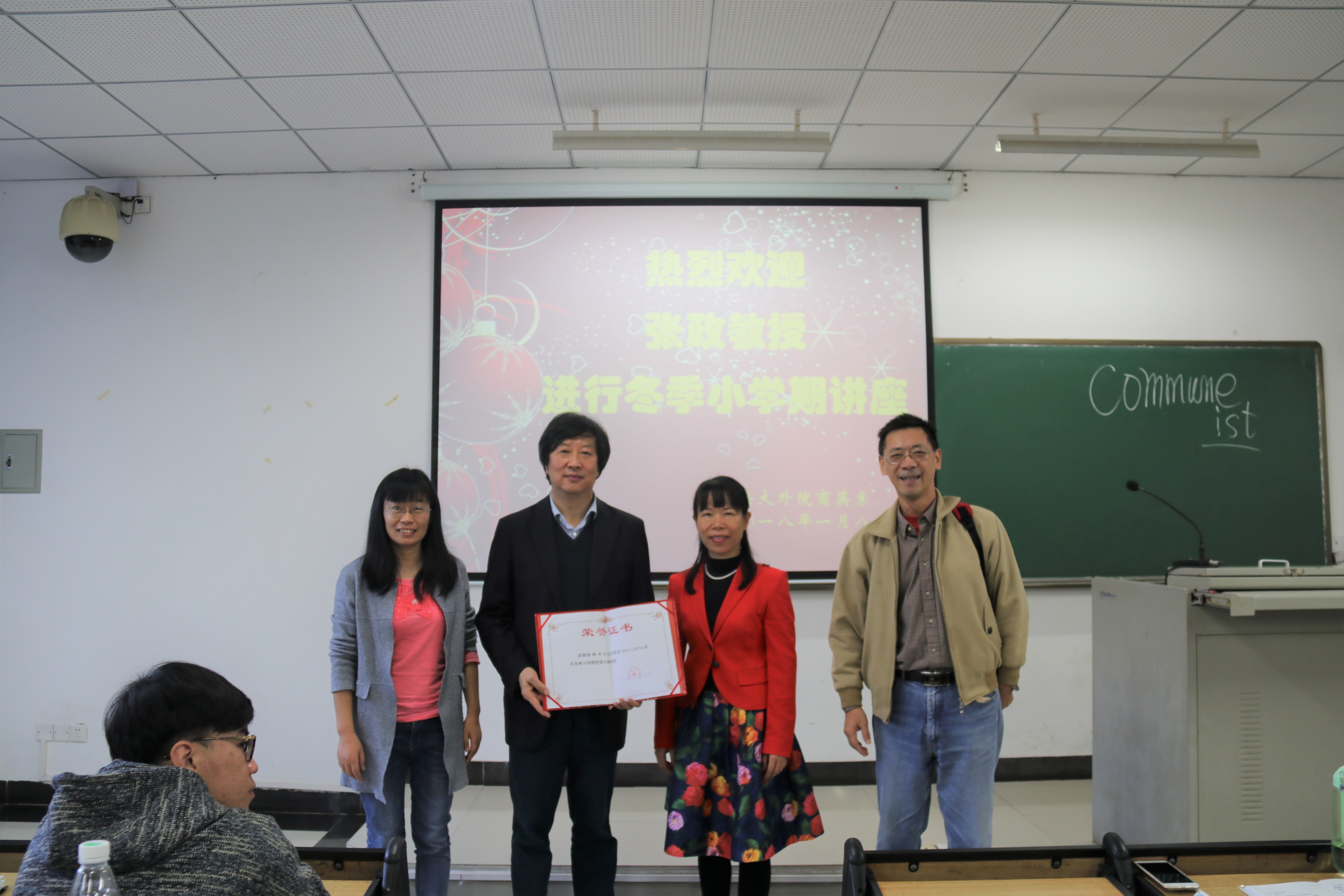 2018年1月8日,bevitor伟德冬季小学期正式拉开序幕。应bevitor伟德邀请,北京师范大学张政教授在5教103教室为同学们开设了冬季小学期第一场讲座——《商务英语翻译》。黄丽芹书记为张政教授颁发了“2018冬季小学期授课外聘专家”证书。讲座由卢尚玉老师主持。