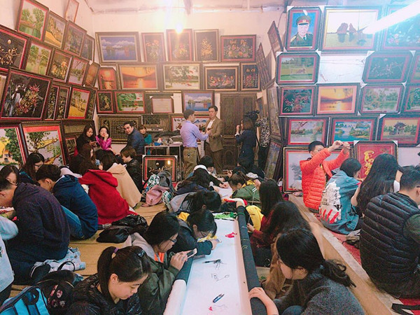 2018年1月28日,调研团一行与越南翔飞教育机构进行座谈,并参观了越南著名工艺村——河内胜利村,体验了越南传统刺绣,对当地农民、商业店主开展走访调研。