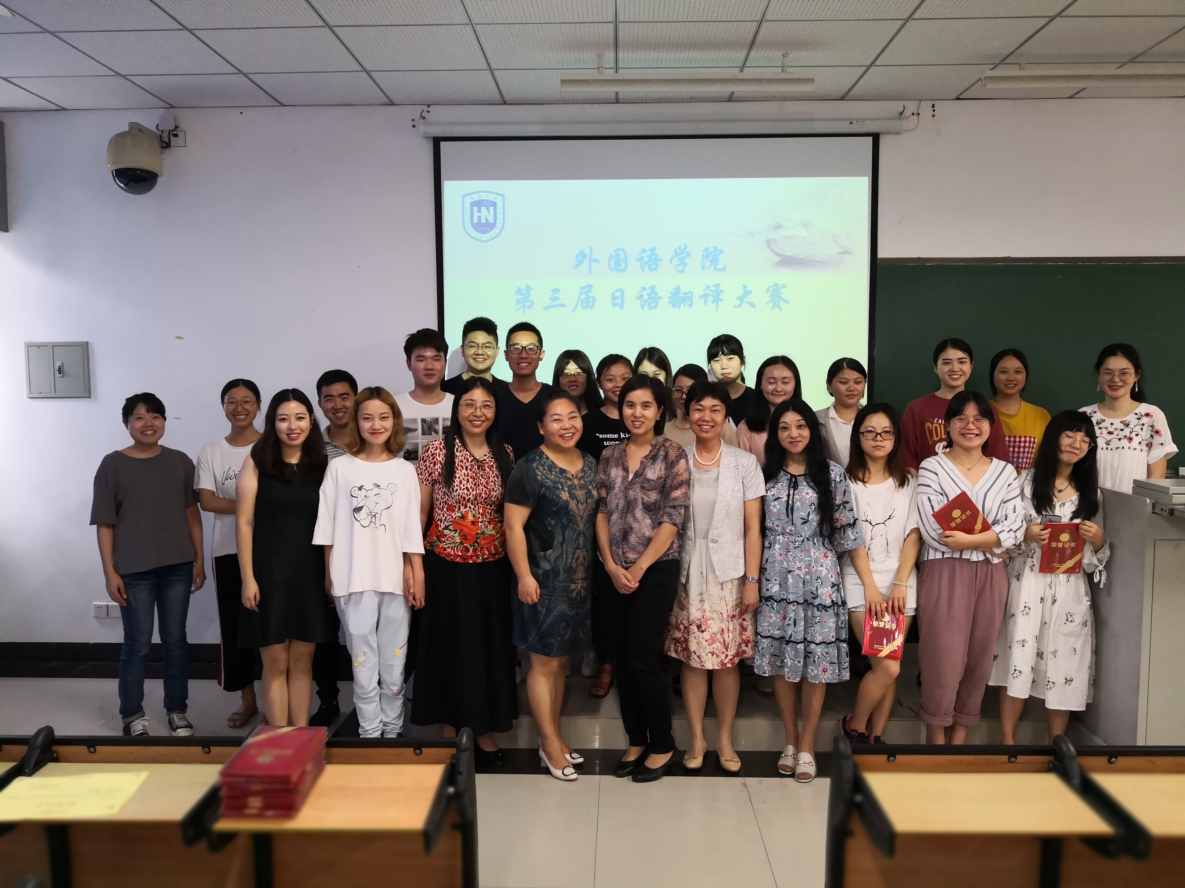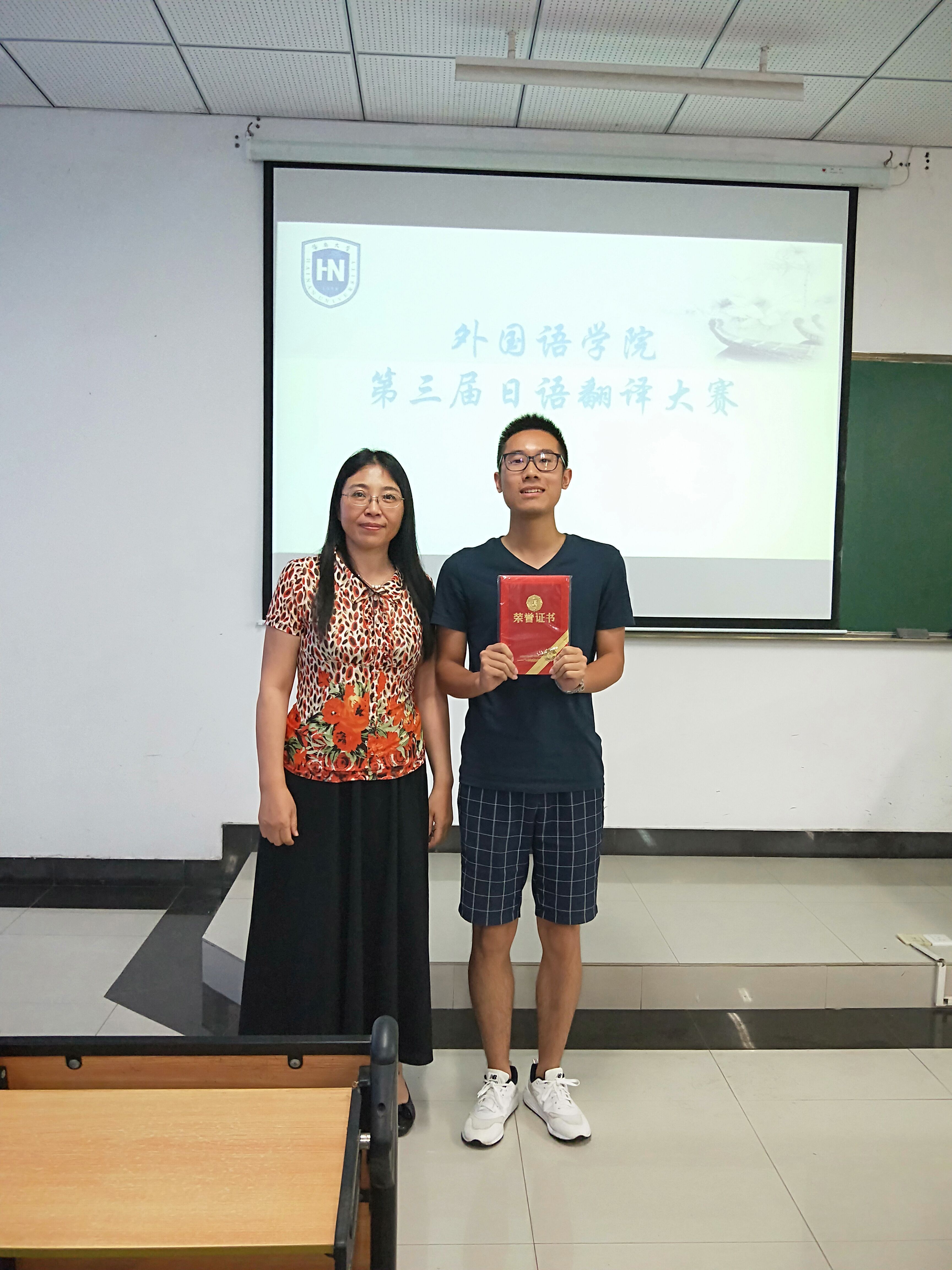 本次选拔赛包括日译汉及汉译日两部分,时间共计30分钟,比赛允许携带纸质词典,但禁止使用手机、电子词典等电子工具。评委根据大屏幕投影呈现的员工试卷答案现场打分,有效确保了比赛的公开、公平和公正。经过角逐,2016级章显宗同学以贴切的翻译、流畅的表达摘得本次比赛桂冠,熊文瑄、刘宸虎、吴宇轩三名同学荣获二等奖,钱晶晶、胡湘若、张满满、刘蕾四名同学荣获三等奖。比赛结束后,日语系主任李明玲老师给获奖选手颁奖并致闭幕词,本次比赛活跃了员工思维、提高了员工的翻译实践能力,为外院学子展现学习成果搭建了有效平台。