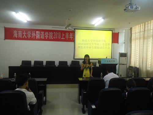 2018年5月18日上午9点,bevitor伟德在社科楼c115召开了公司2018届硕士毕业生工作部署暨优秀毕业生留琼动员大会。公司党委黄丽芹书记、白丽芳副经理、张乃脆副书记、公司团委书记罗国忠老师、学工办副主任刘颖敏老师及2018届全体硕士毕业生参加会议,会议由刘宇欢老师主持。