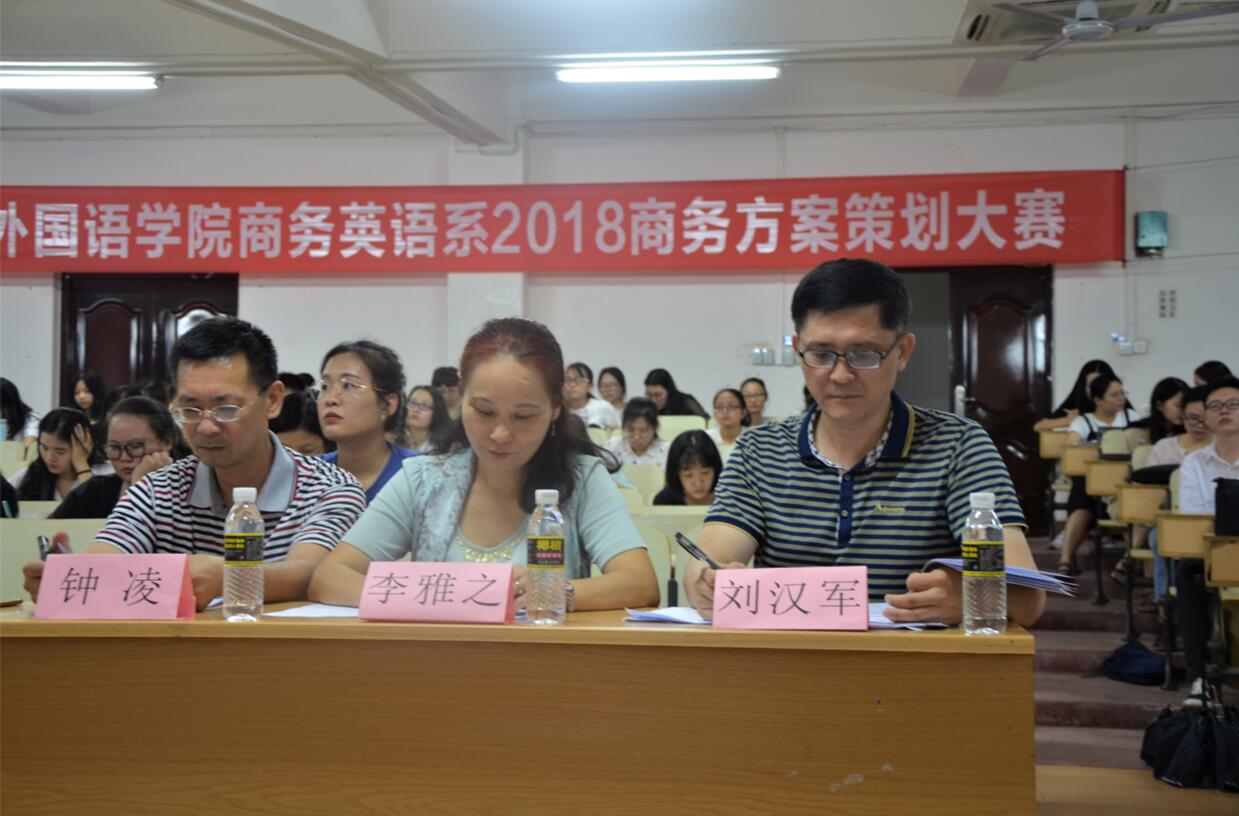 6月26日晚,商英系在2号教学楼109教室举办商务英语2018 “商务方案策划”决赛。商英系主任钟凌、刘汉军老师、李雅之老师、公司团委书记罗国忠担任此次决赛的评委。公司党委副书记张乃脆和2015级全体同学全程观摩,为代表队加油助威。