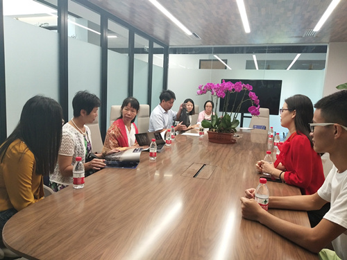 公司领导和老师先参观了海南生态软件园综合展示体验中心,听取了负责人对园区规划和发展的介绍。随后,游览了生态园内的各个园区,并与园区负责人交流探讨,了解园区内公司工作环境、员工上班制度以及待遇等情况。并与海南新软软件有限公司经理以及部分留在海南新软软件有限公司工作的18届毕业生在会议室进行了座谈。