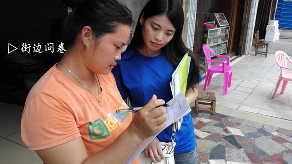 实践队员在街边发放问卷