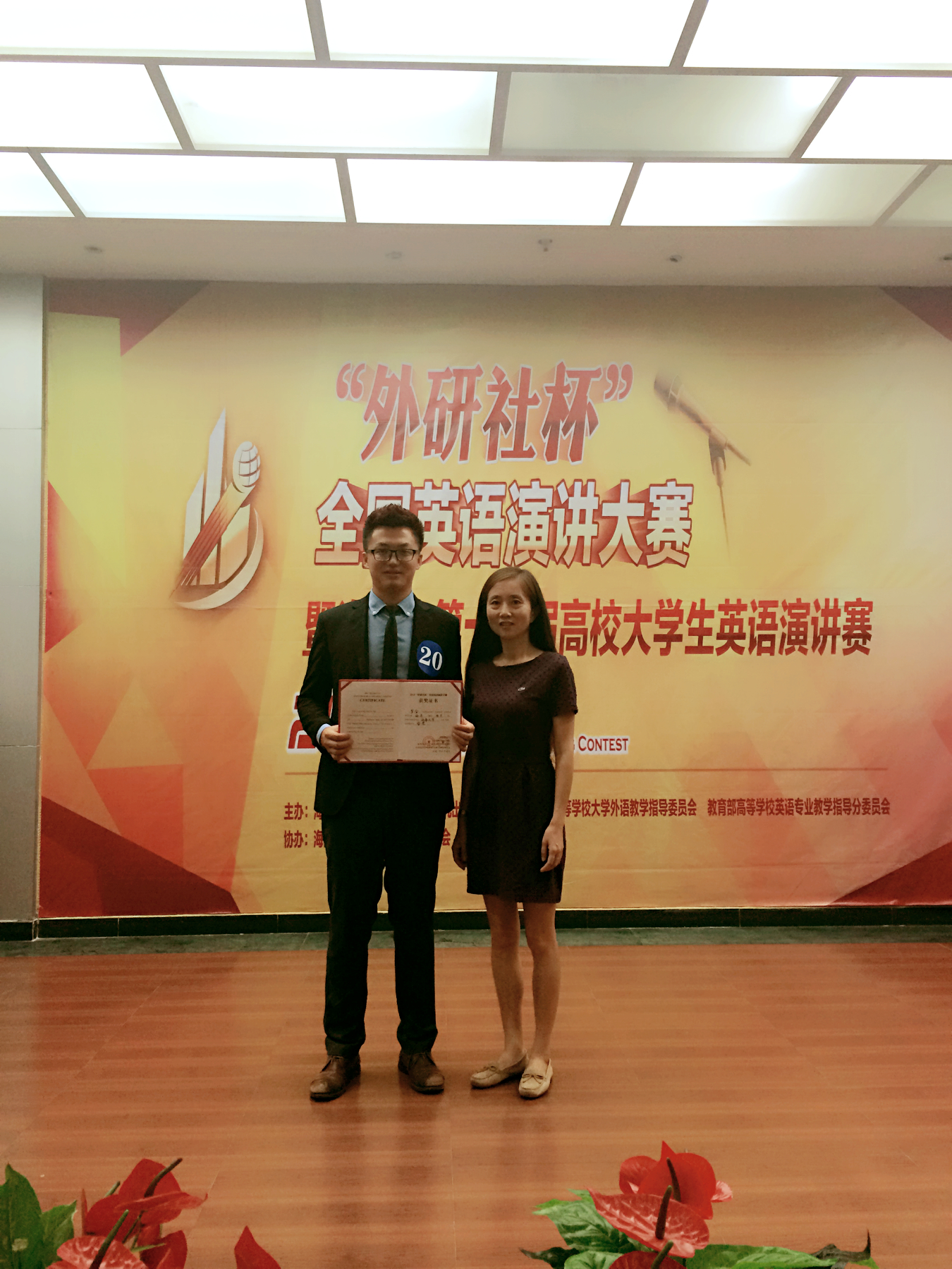 2015年10月23日上午八点, 2015“外研社杯”全国英语演讲大赛海南赛区复赛在海口经济公司学术报告厅隆重举行。公司MTI专业研究生罗金同学表现优异,获得特等奖!